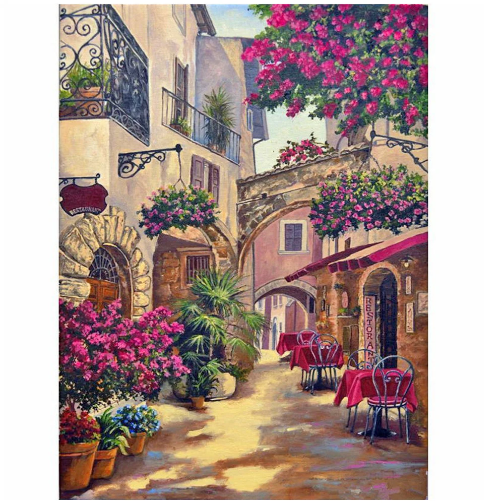 Алмазная живопись, вода, город Италии, красота, квадратная Алмазная...