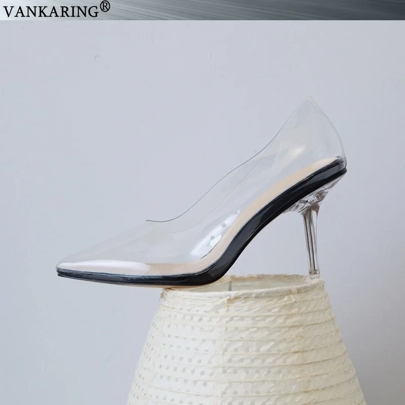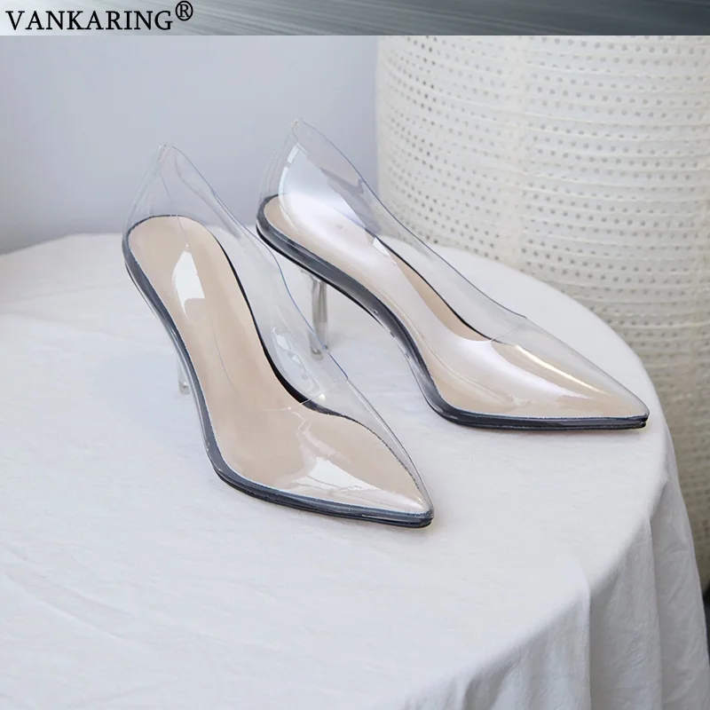 Женские туфли-лодочки, прозрачные туфли на очень высоком каблуке, с острым носком, без застежек, для свадебной вечеринки, модельные туфли, черные, телесные icon star icon star icon star icon star icon star