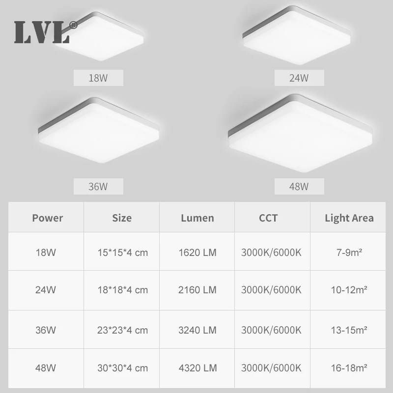 Светодиодный панельный светильник 18 Вт 24 Вт 36 Вт 48 Вт 3000 В переменного тока 6000K для гостиной, внутреннее освещение, светодиодный потолочный панельный светильник