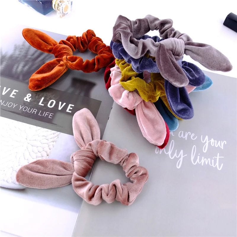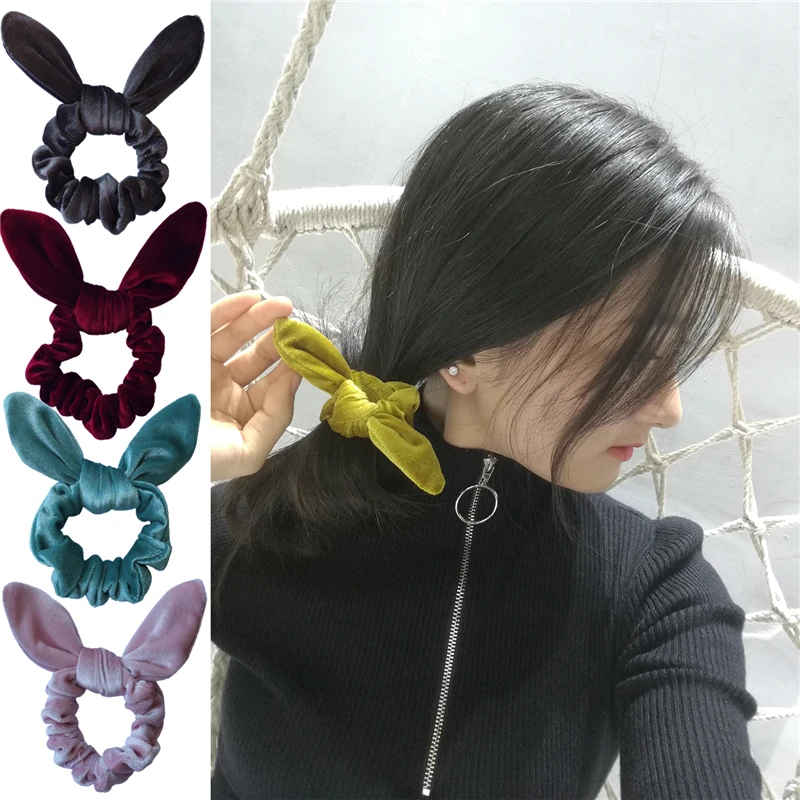 Бархат с заячьими ушками; Резинка для волос для девочек Для женщин бантом эластичная резинка для волос резинки для волос аксессуары