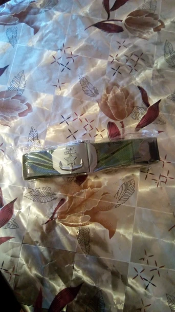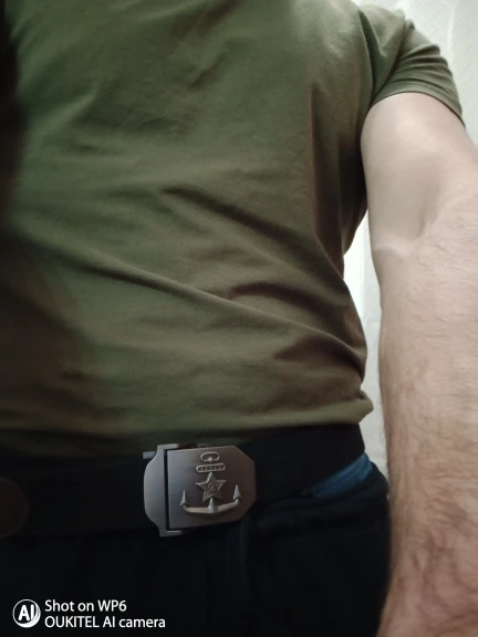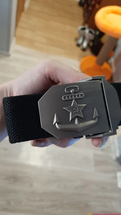 Ремень хороший, пришёл быстро в Липецкую, обл.. Товар сделано качественно!! рисунок как в армии был на бляхе ⚓ с звездой...! царапал краска держится хорошо, что за метал не знаю?
