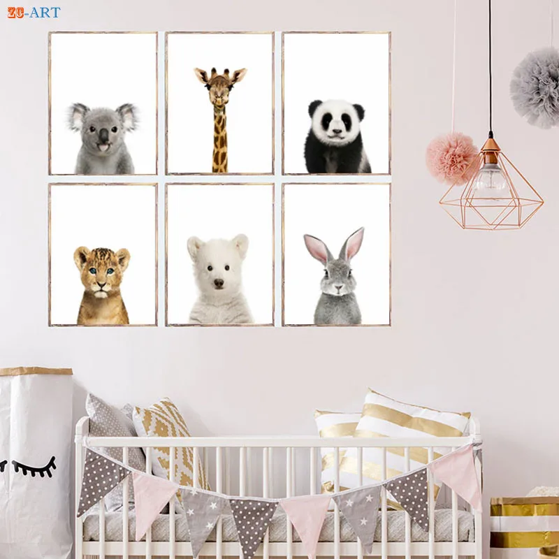 Принты для детской милые животные Холст Картина коала Жираф панда Львенок полярный медведь, кролик, плаката детской комнаты настенный Декор