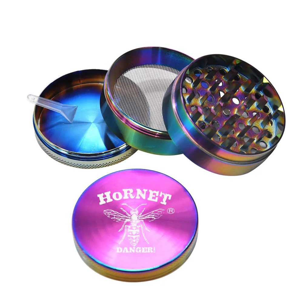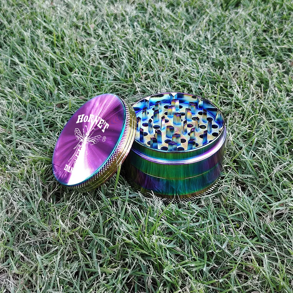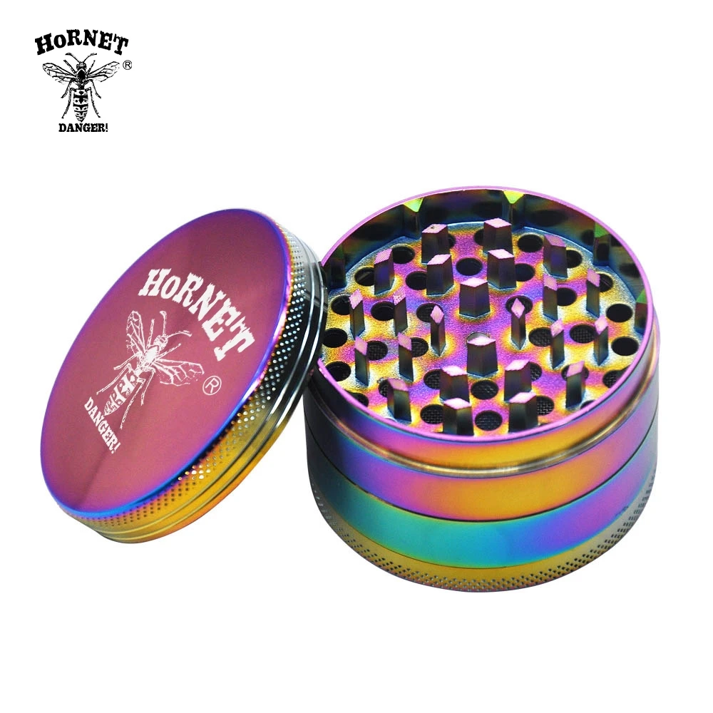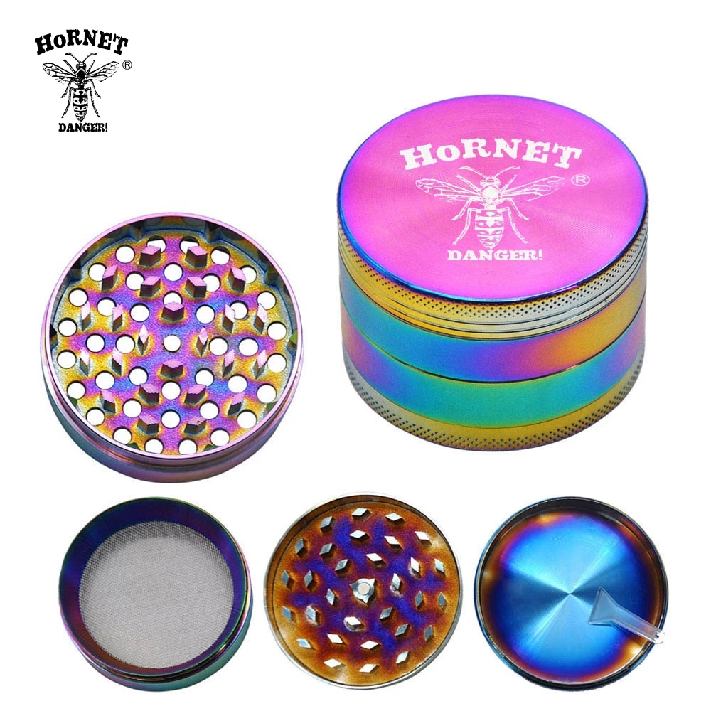 HORNET, металлическая точильница для табачных трав, радужная цинковая дробилка из сплава, большая, 63 мм, 4 шт., Металлическая магнитная точильница для курения, ручная мельница