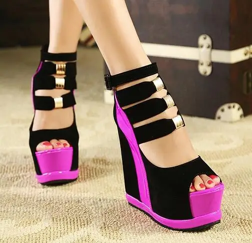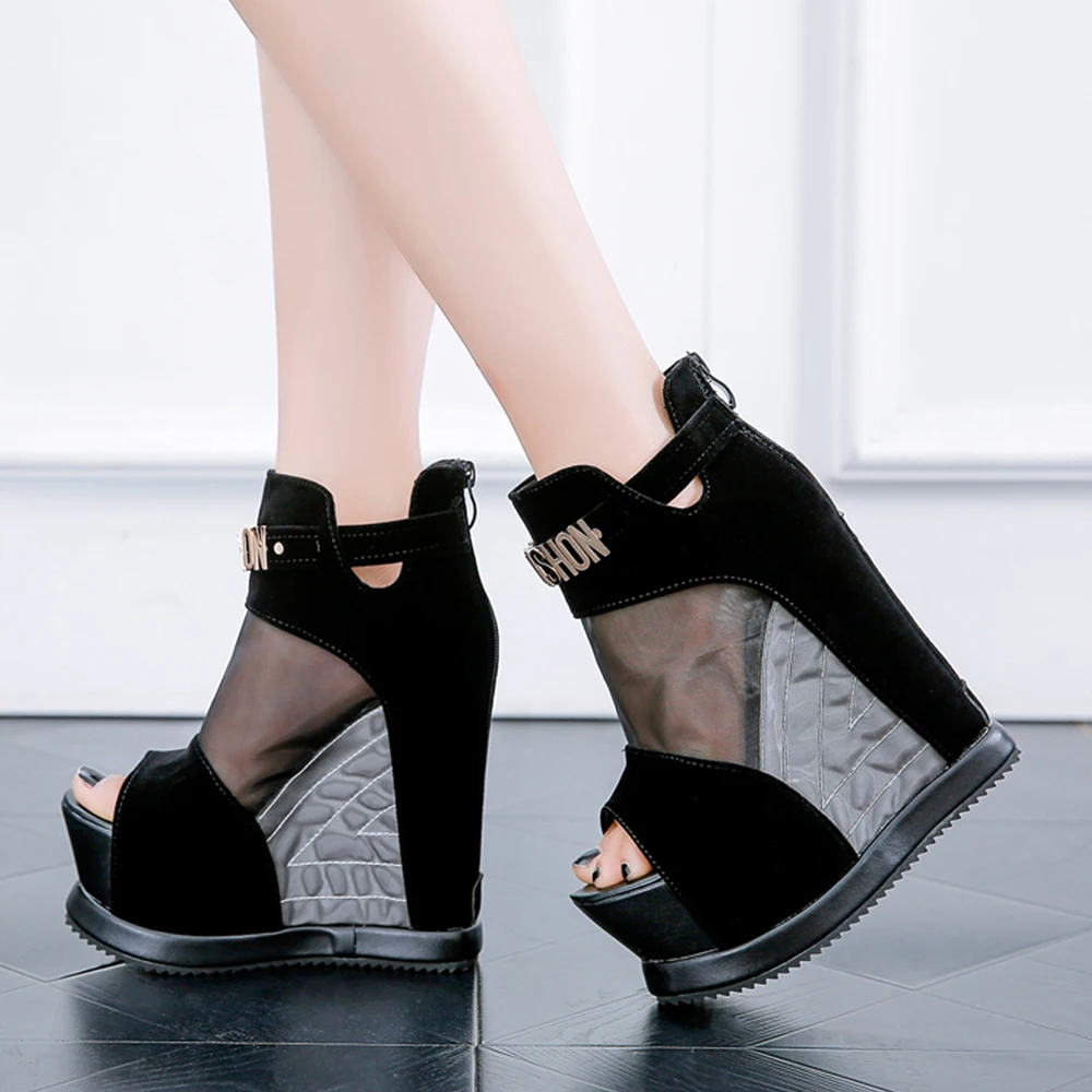 Новинка; Ботильоны из флока; Женские сандалии; Пикантные тонкие туфли с открытым носком на высоком каблуке; Полуботинки на танкетке с толстой подошвой