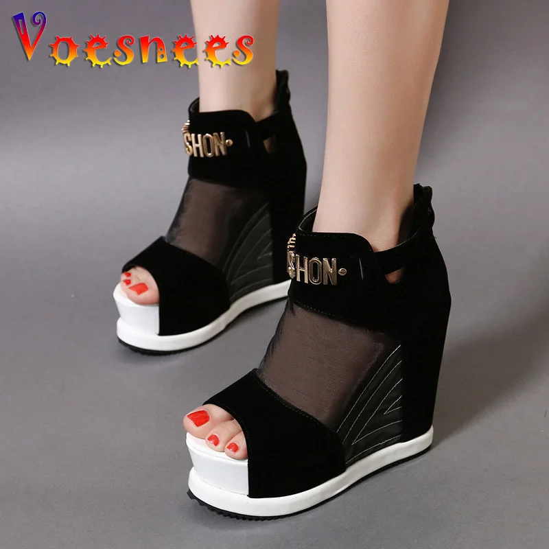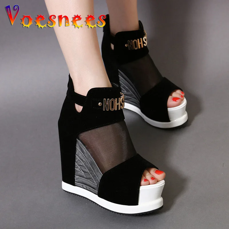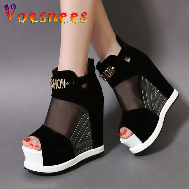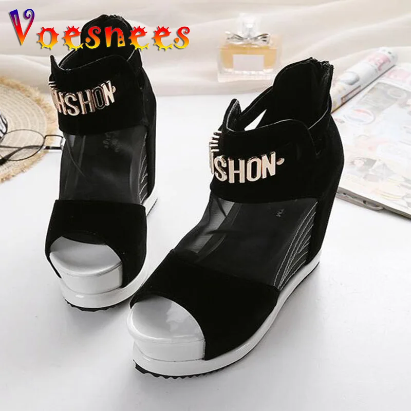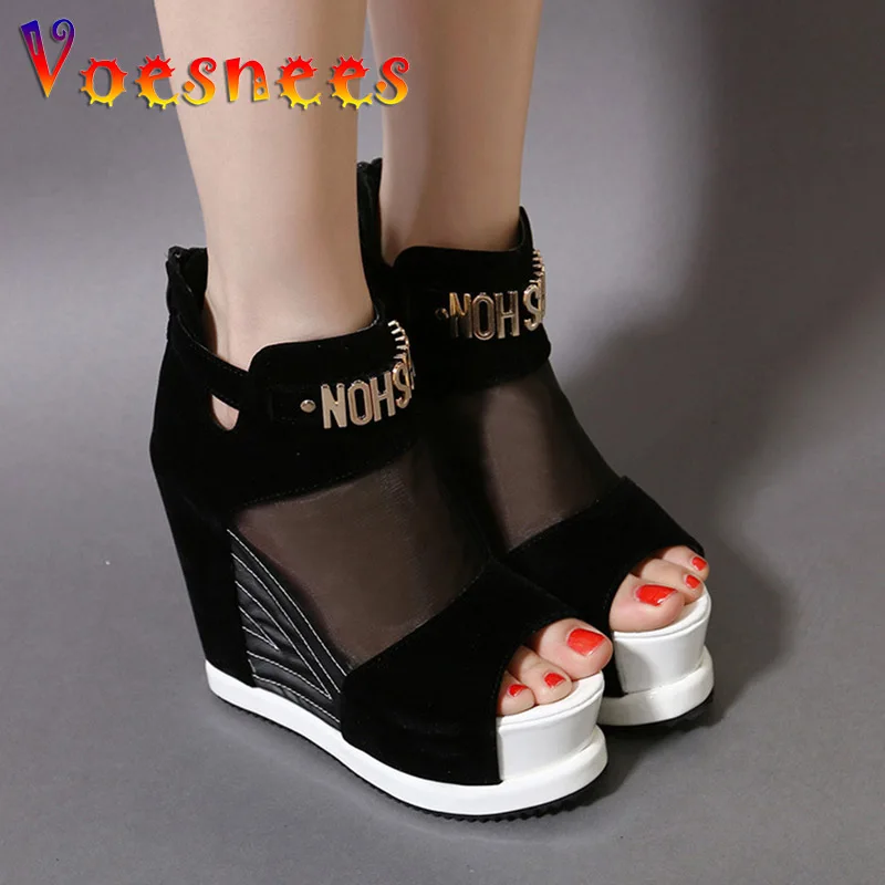 Женские ботинки на танкетке, летние короткие сапоги из флока с открытым носком