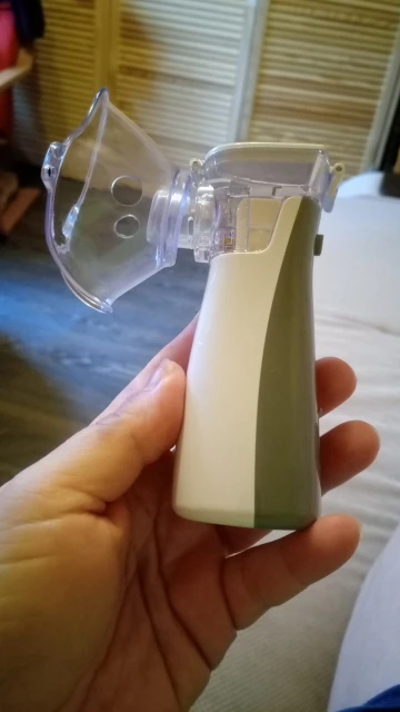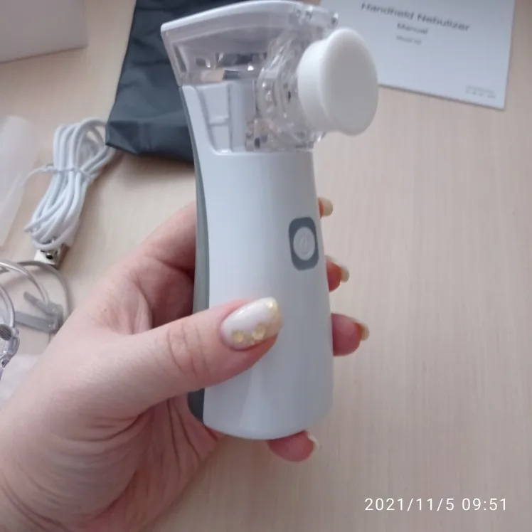 Хочу поделиться своим впечатлением. Дома у нас есть небулайзер, обычный большой, который тарахтит как трактор, хоть и новый тоже. Тут я увидела, что есть такие ручные небулайзеры и решила заказать. По цене вобще не дорого. Заказала я это чудо 29.10, и уже 04.11 я его получила. Такой быстрой доставки я не ожидала конечно. Небулайзер просто супер, это какое то спасение прям, должен быть в каждом доме я считаю. Тем более такой. Он почти бесшумный, чуток шипит и всё. Парит он замечательно. Раствора можно налить 8мл, и думаю даже больше. Хотя всегда нужно намного меньше. Работает от батареек и от сети. От батареек это вобще тема, так удобно. Дала ребёнку, лежит на диване, смотрит мультики и дышит. Довольны мы оба. В наборе есть всё, что нужно. А сумочка меня прям поразила, такой плотный материал, и ведь можно взять с собой в поездку, места вобще не займёт. Вобщем, очень рада, что приобрела данный небулайзер. Всем советую!