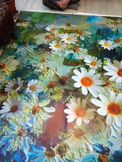 Я получила, но ещё не повесила. Жду ковёр в ромашку. Но смотрится шикарно. Как сделаю- выставлю фото