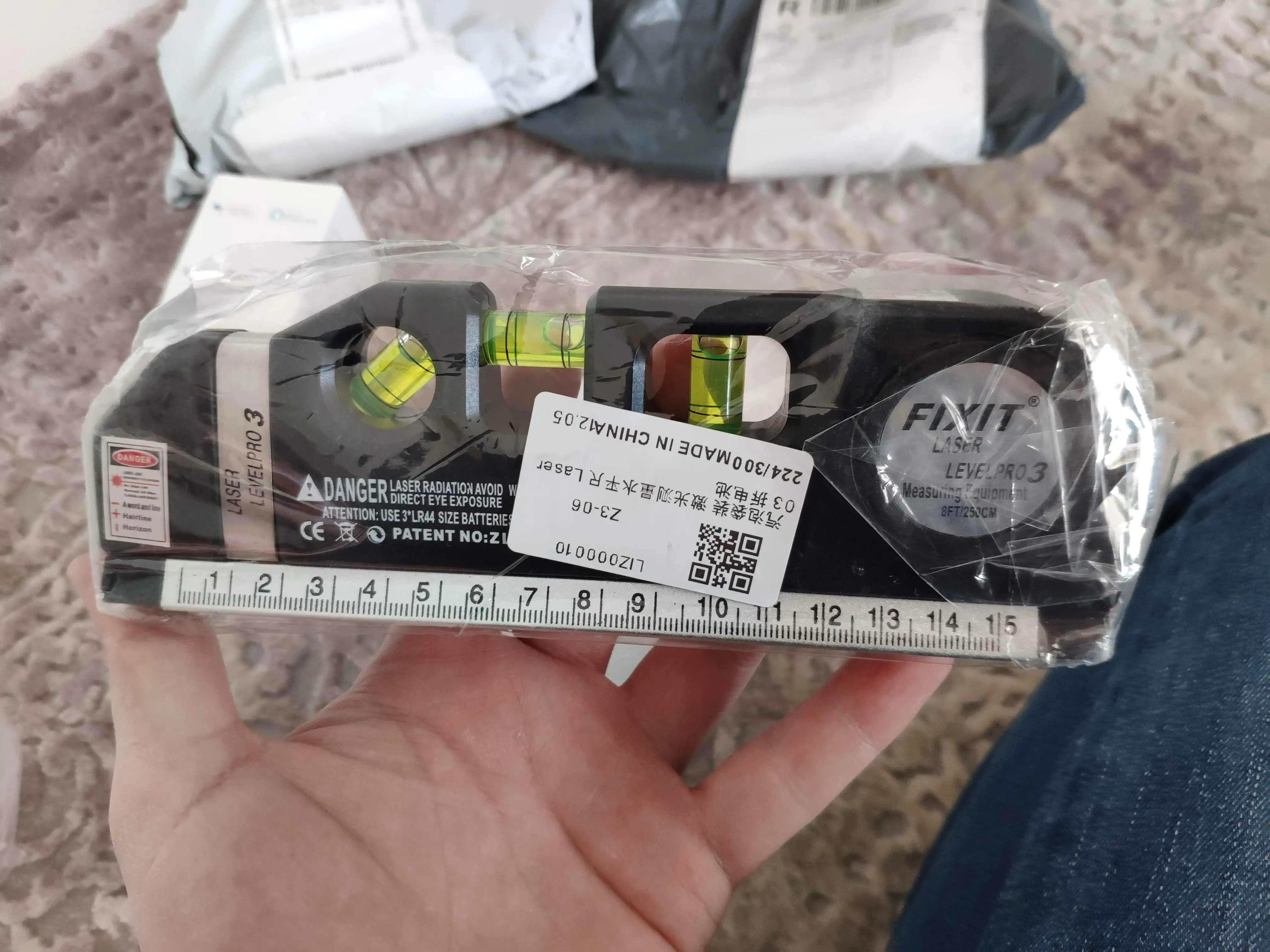 Он был отправлен вместе с янвэнь, и продукт, который я купил 8 февраля, был доставлен в Турцию 2 марта. Налог 16TL пришел. Благодаря жениху, я заплатил 40 центов на продукт $7,86, 16 фунтов на налог. 3 LR44 батареи необходимы, если мы прибудем к продукту, батарея приходит без нее уже написала на рекламе. Лазер может не быть очевидным в дневное время, но это неплохо. <2en> может использоваться горизонтально, вертикально или одновременно. <2en> метр внутри 250 см. <2en> Это также полезно. I-I нравится. Я думаю, что каждый Профессиональный или любительский мастер, который использует водную шкалу, должен быть инструментом.