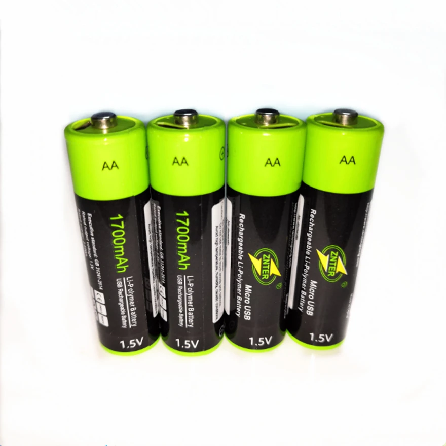 4 шт.лот ZNTER AA Аккумуляторная батарея 1,5 V AA 1700mAh USB зарядка литиевая батарея без кабеля Micro USB