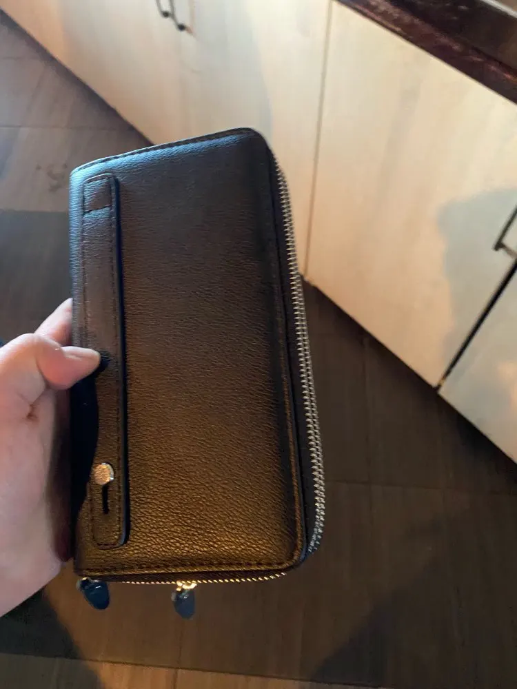 Клатч мужской, кожаный, с двумя молниями, черный, коричневый