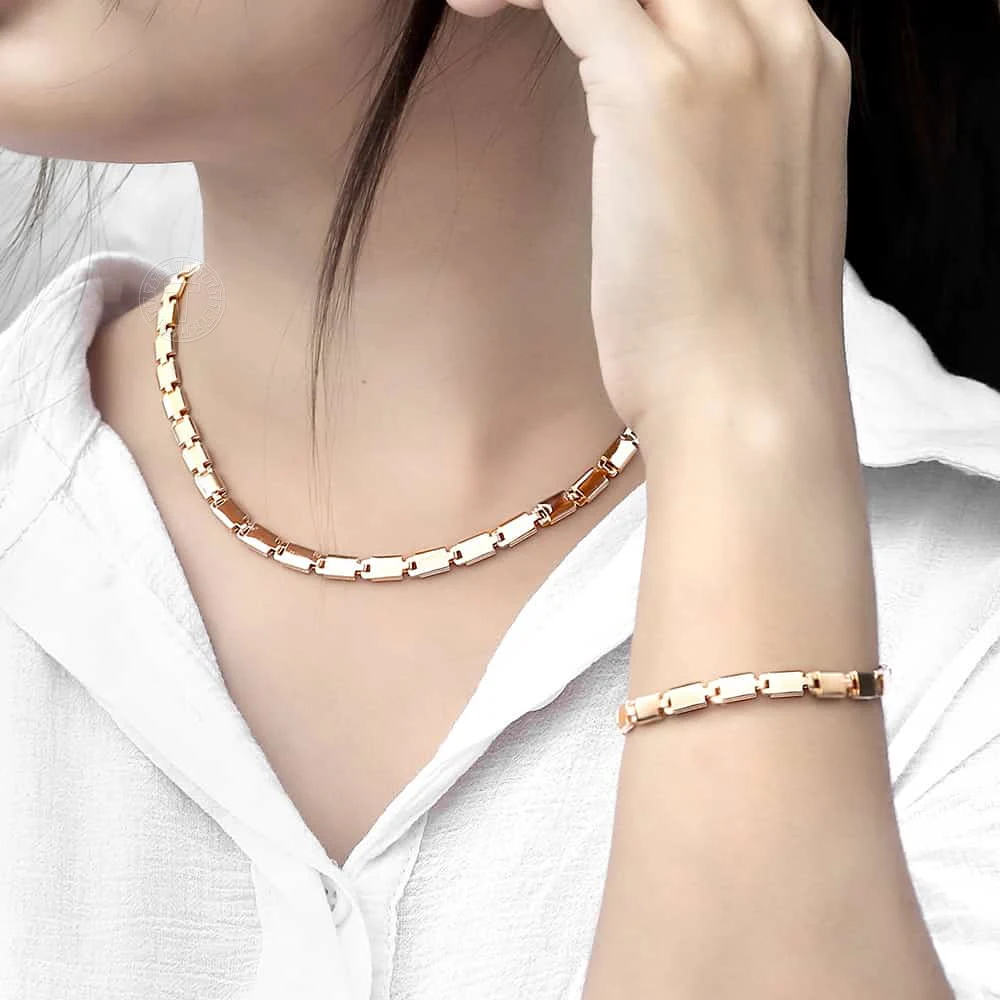 Браслет ожерелье светильник Марина палка цепь 585 розовое золото женский Ювелирный Комплект Прямая поставка Ювелирные изделия 5 мм LCS08