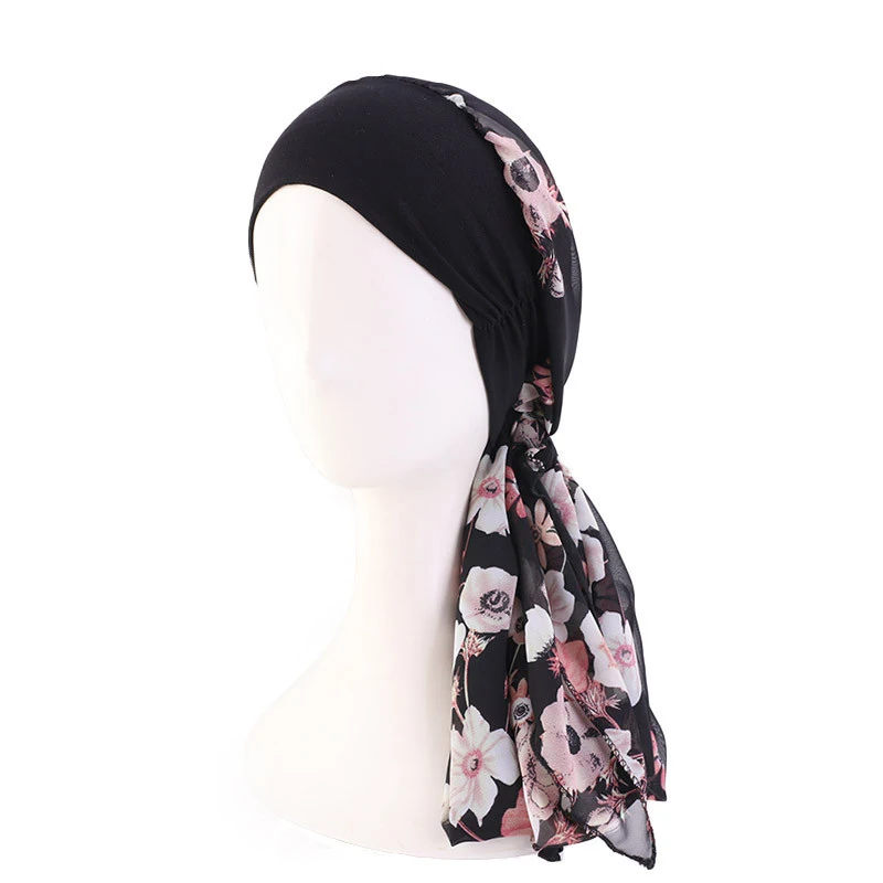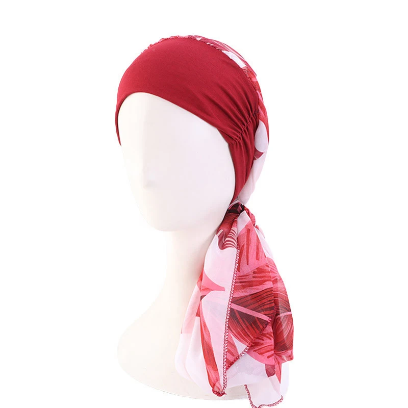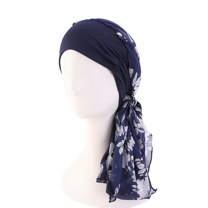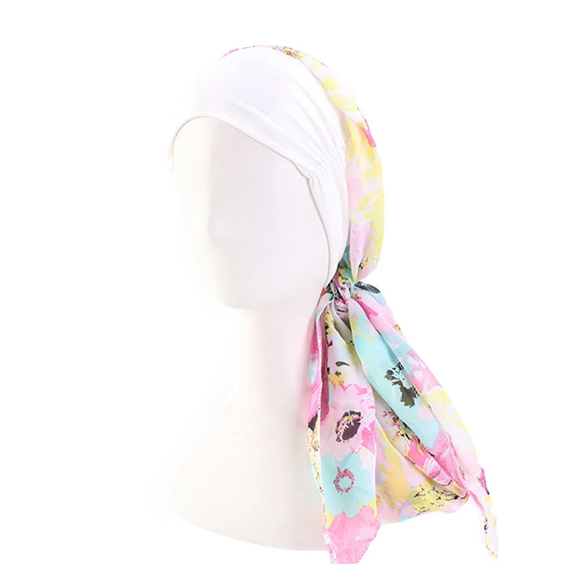 Шапочка тюрбан для мусульманских женщин, головной платок, эластичная бандана, хиджаб, Кепка для выпадения волос, с цветочным принтом, кепка для рака, кепка для химиотерапии, Арабская и индийская