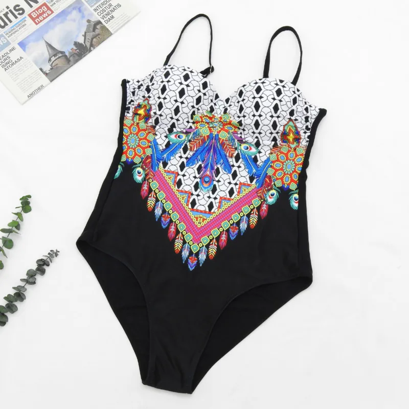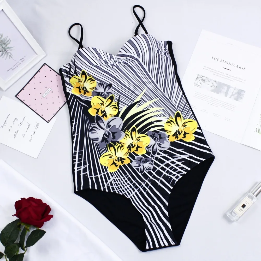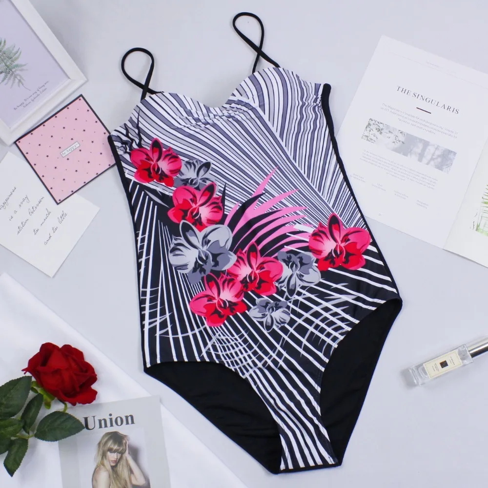 Женский слитный купальник с цветочным принтом, пуш-ап
