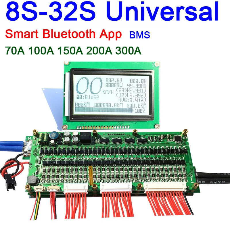 8S до 32S Lifepo4 литий-ионный аккумулятор защита 70A/100A/150A/200A/300A smart bms android Bluetooth приложение ЖК-дисплей