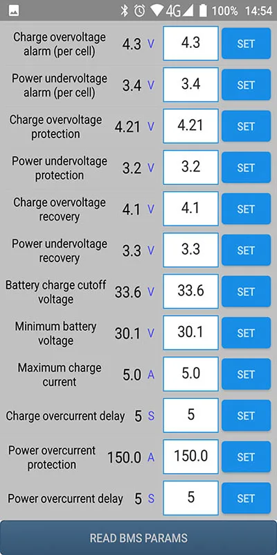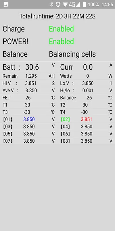 Модуль Bluetooth, подключенный к BMS, который может подключаться к смартфону, прямо сейчас поддерживает только Android 4,3 выше.