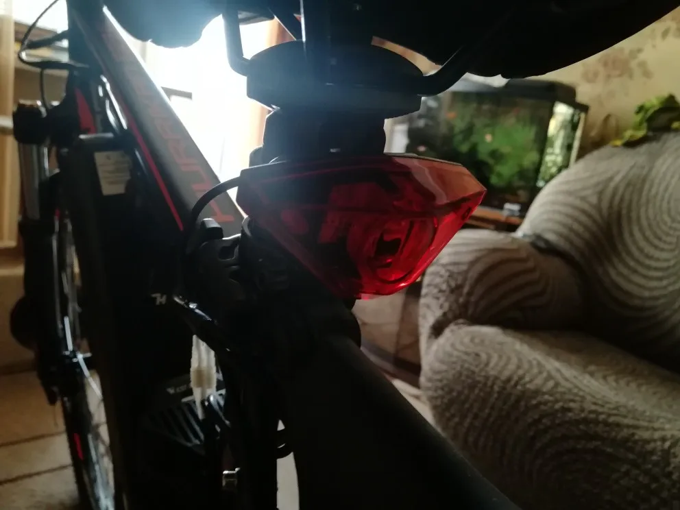 1.Большой угол луча 180 градусов, в разных направлениях можно увидеть задний фонарь электрического велосипеда.