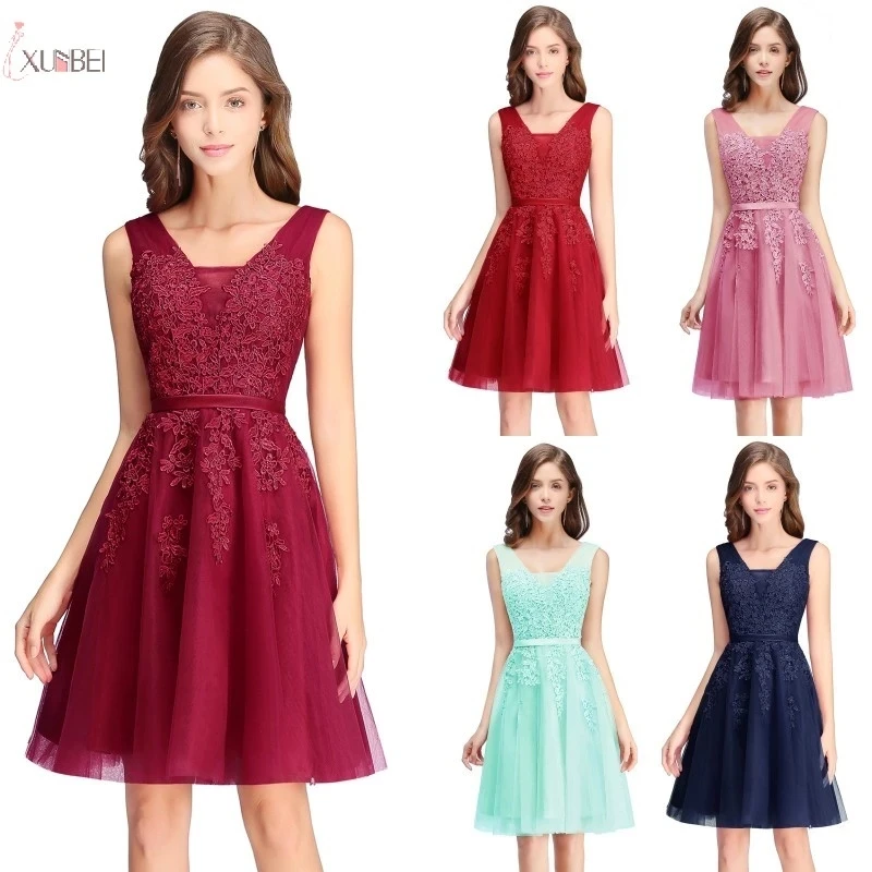 Женское короткое платье для выпускного вечера, розовое кружевное платье без рукавов с V-образным вырезом и аппликацией, 2019