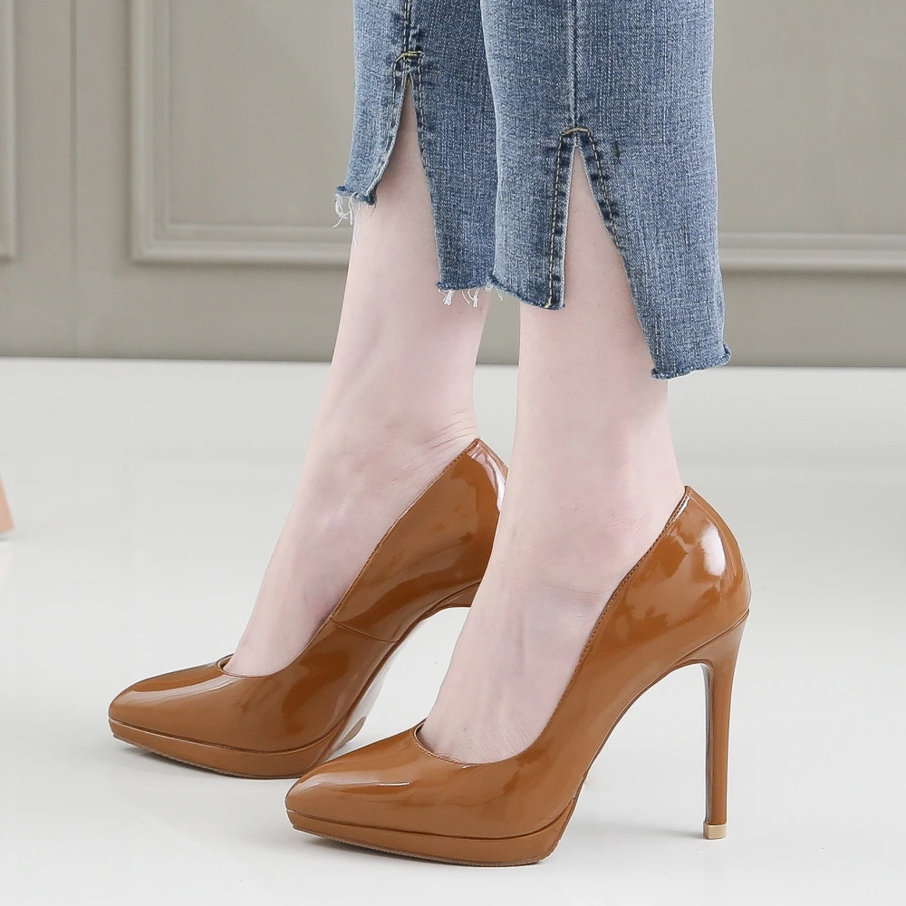 Туфли-лодочки женские из лакированной кожи на высоком тонком каблуке 11 см, E0002