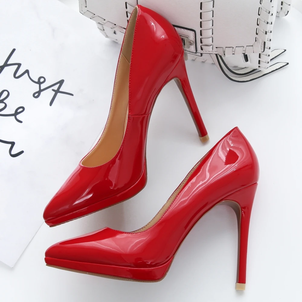 Женские туфли-лодочки из натуральной кожи на очень высоком каблуке 11 см, свадебные туфли на платформе с острым носком, цвет красный, черный, 2019
