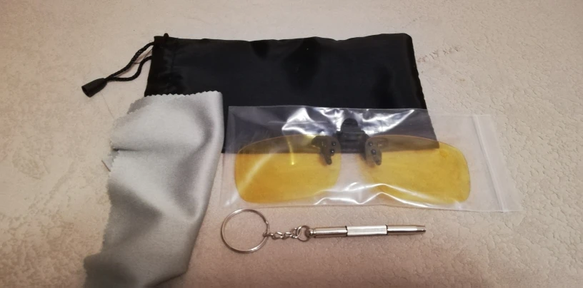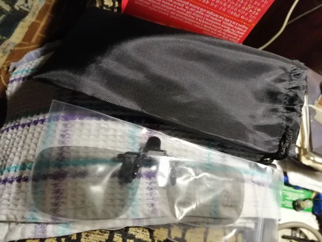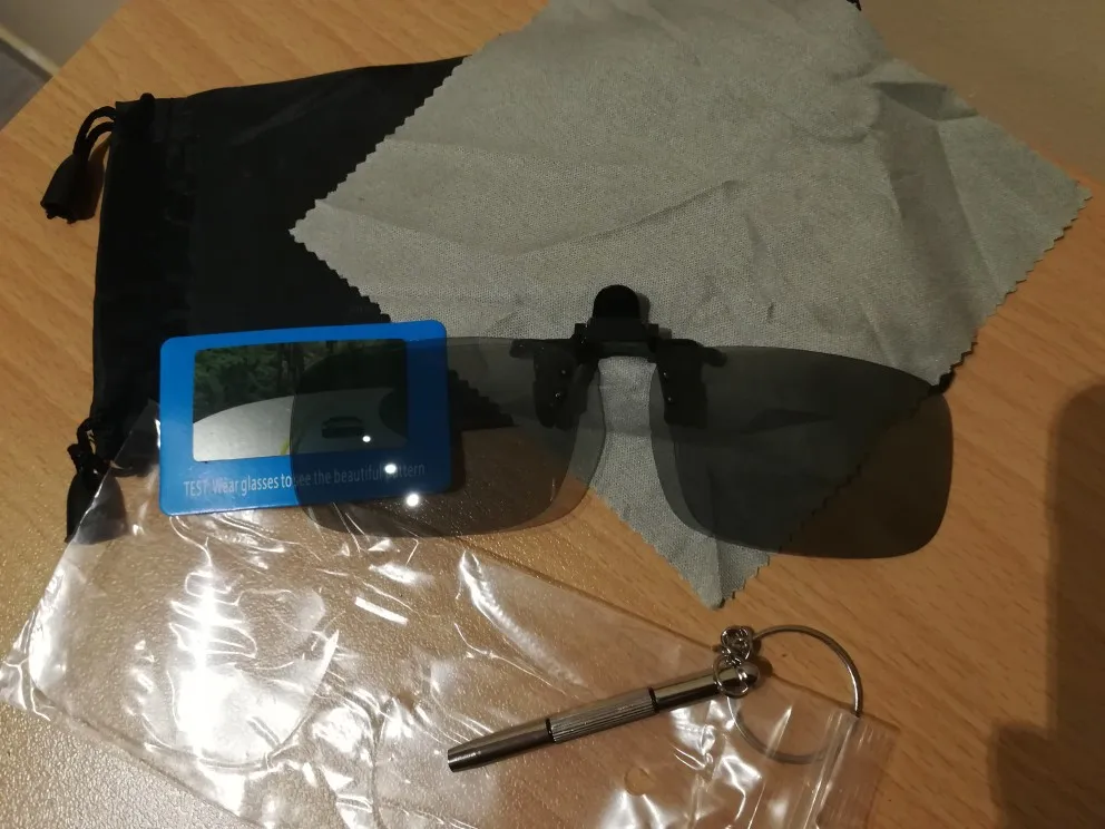 замечательное дополнение к очкам с диоптриями. на очках сидит прочно. в тёмном помещении можно открыть их вверх. фотохром ность хорошая, проверял на картинке которая идёт с этими штуками. с ними же идёт мешочек для хранения и салфетка для протирания.