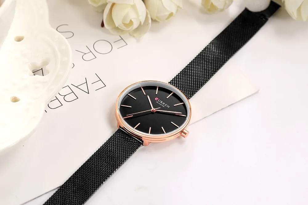Часы женские кварцевые, из нержавеющей стали, с сеткой