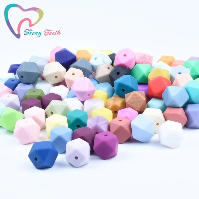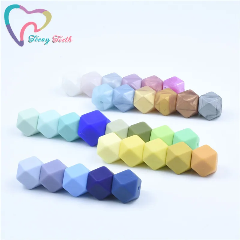 10 шт. 14 мм шестигранные силиконовые бусины, Детские DIY цепочки для соски, аксессуары для игрушек для душа, свободные квадратные шестигранные жевательные бусины для прорезывания зубов