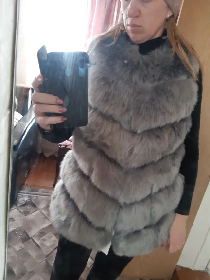 Очень, очень красивый жилет серебристого лисьего цвета и хорошего качества из искусственного меха. Я могу отправить вам заказ в этом магазине. Я заказываю раньше в этом магазине жилет в других цветах: красный и черный жилет также приятно заказать ..... Черный и серебряный цвета приятно носить классический и красный, приятно носить спортивный/сексуальный модный стиль... просто попробуйте, и вы увидите это самостоятельно. .... Мило!