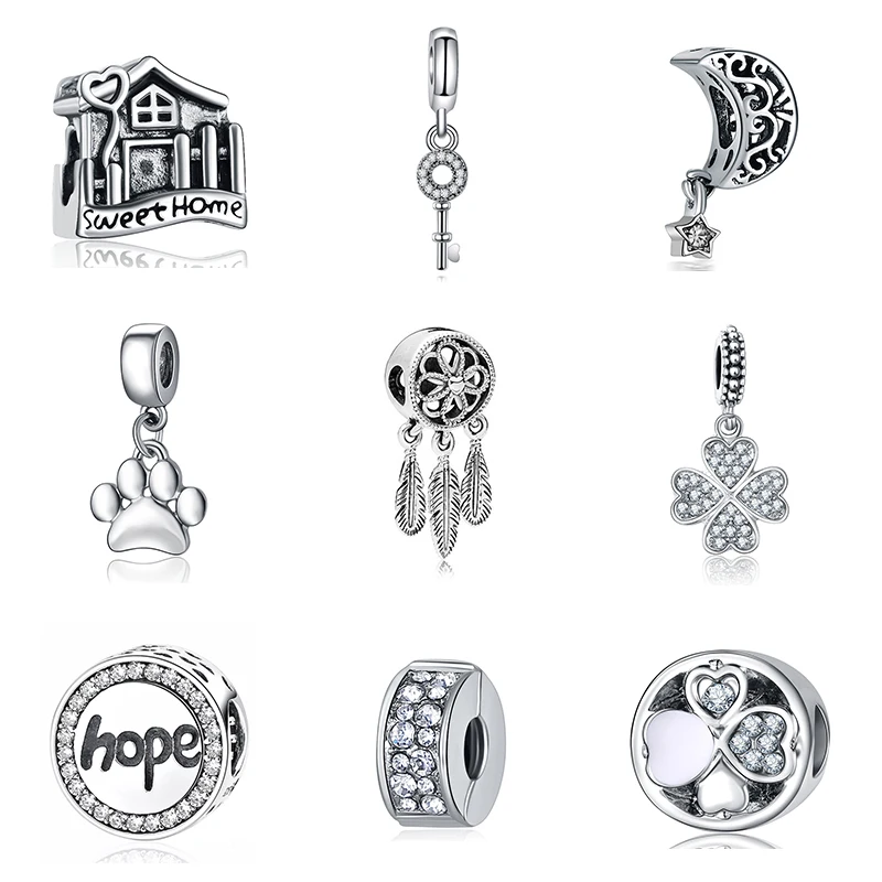 Новые оригинальные бусины из сплава для дома любовь Счастливый Клевер белый прозрачный CZ очаровательные подходят для браслета Пандоры браслет ожерелье DIY женские ювелирные изделия