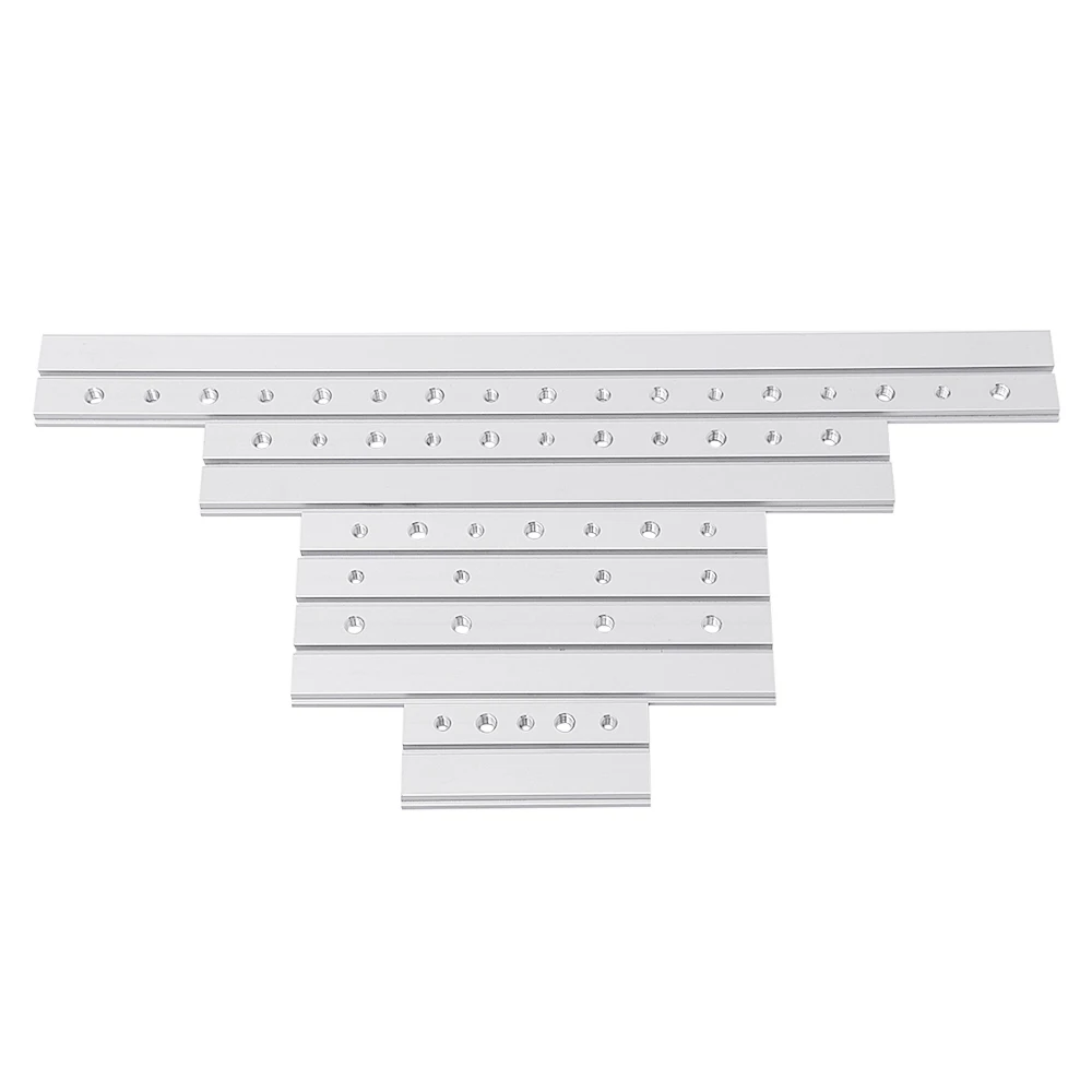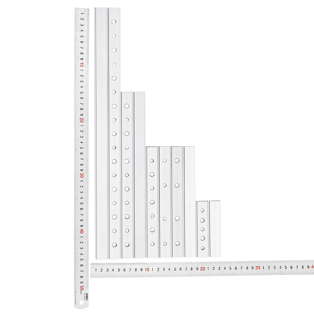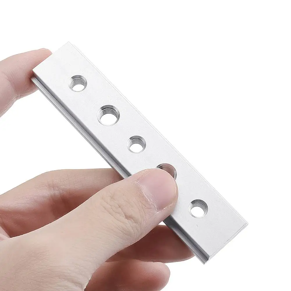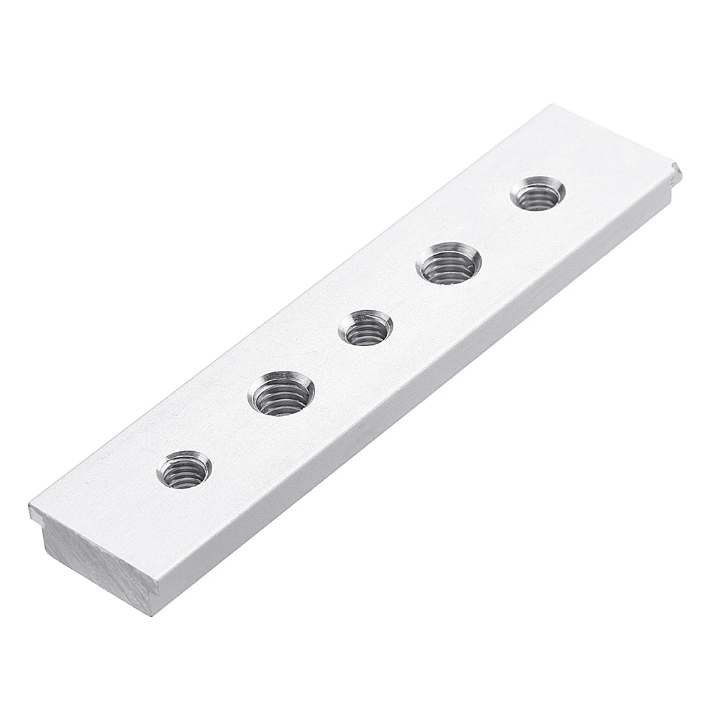 Товар Длина Отверстие Количество резьбы #1 100 мм Нет / #2 100 мм Да 3 шт. M6 + 2 шт. M8 #3 200 мм Нет / #4 200 мм Да 4 шт. M6 + 3 шт. M8 #5 200 мм Да 4 шт. M6 #6 200 мм Да 4 шт. M8 #7 300 мм Нет / #8 300 мм Да 5 шт. M6 + 6 шт. M8 #9 450 мм Нет / #10 450 мм Да 8 шт. M6 + 9 шт. M8Применение: T-slot T-track miter furniture track slot router table wood tools. Посылка включает в себя: 1 x скользящий блок
