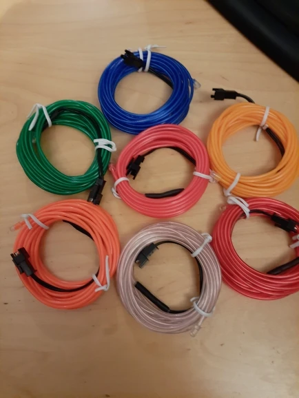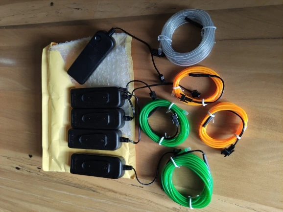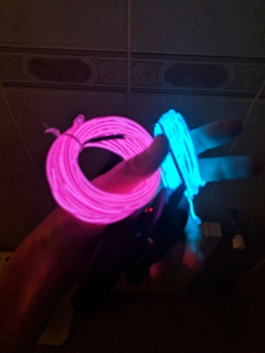 Хороший шнурок. Светится отлично. Единственный минус - высоковольтный модуль достаточно громко пищит, но для моих задач это не страшно.