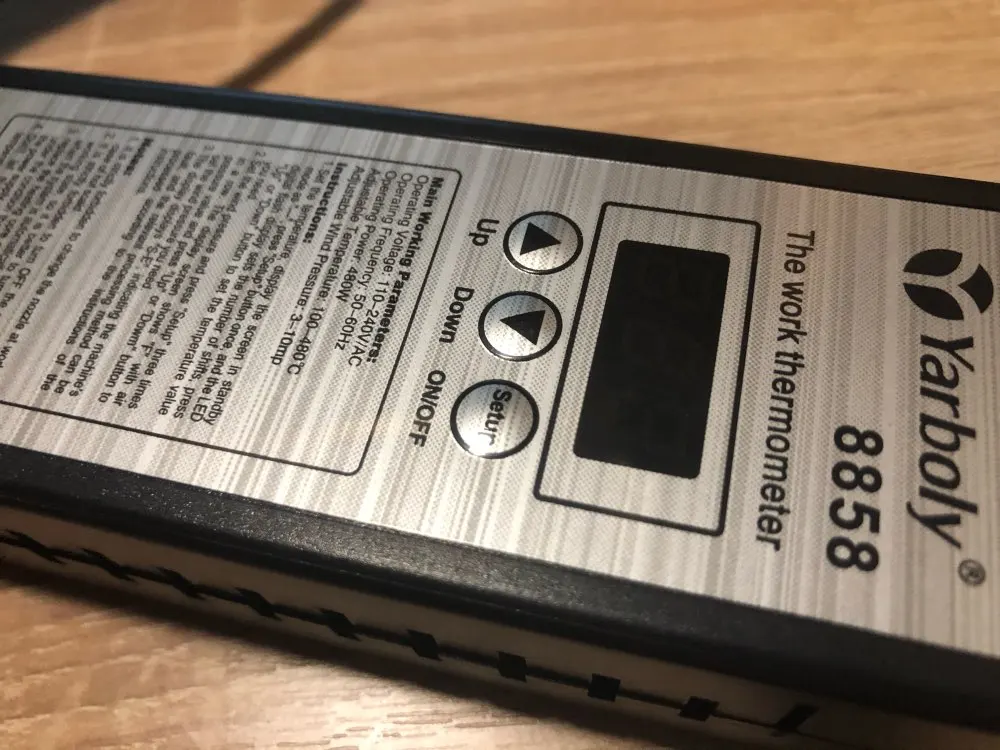 Отличная вещь за свои деньги. Работу полностью выполняет, нагревает быстро, пробовал до 300 градусов выставлять, работает. Чтобы поменять температуру нужно нажать кнопку setap замигает первая циферка, и надо нажимать стрелки.
