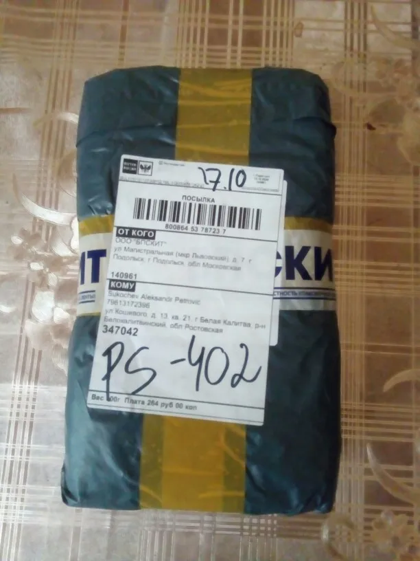 спасибо большое! пришло за 2 дня до Волгоградской области