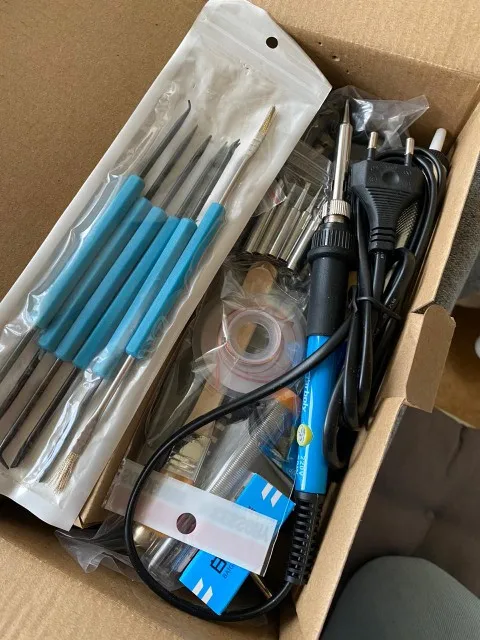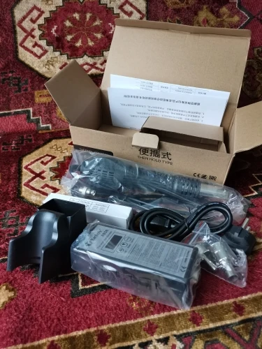 Товар прибыл в течении 1,5 недель. Доставка до квартиры. Упаковка не деформирована. Содержимое цело и работоспособно (опробовано).Регулировка температуры паяльника на ручке паяльника, а фена на блоке питания (на блоке переключаются и режимы)