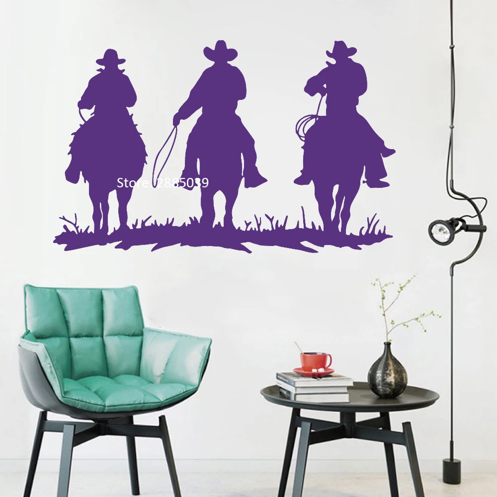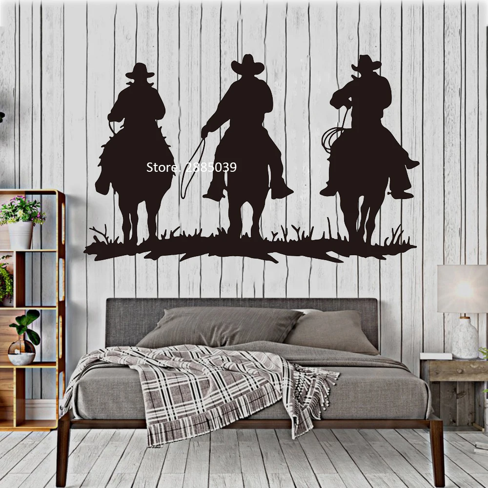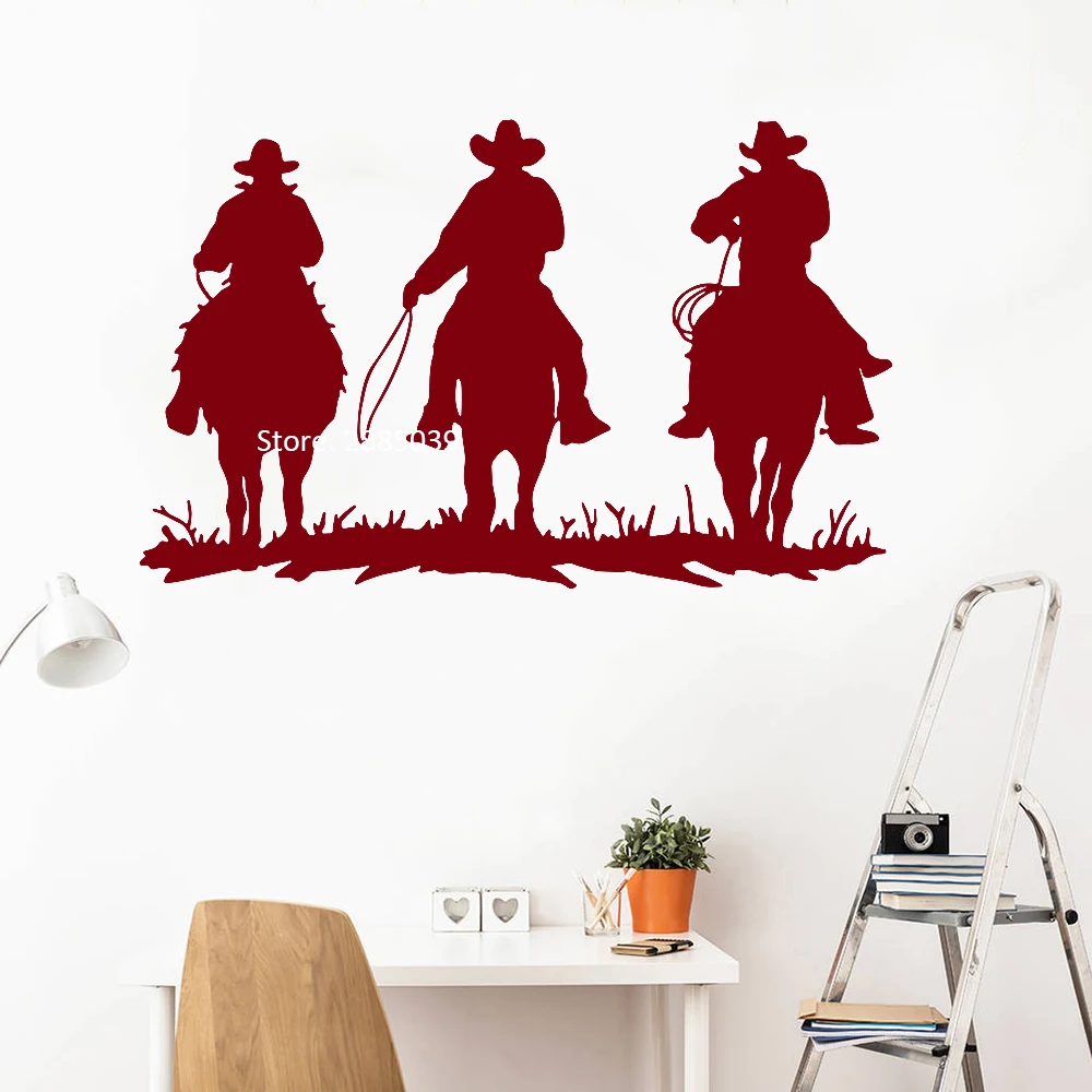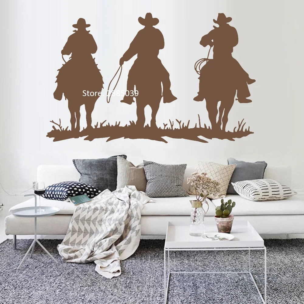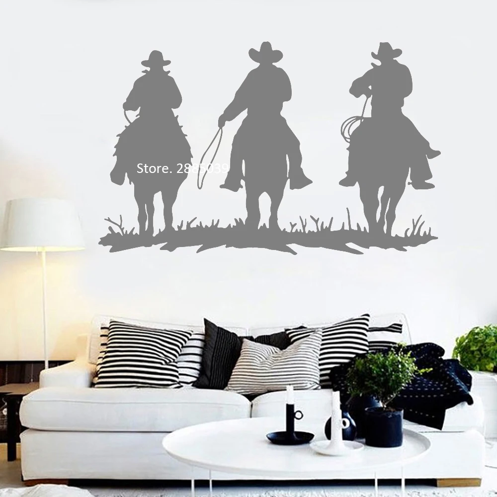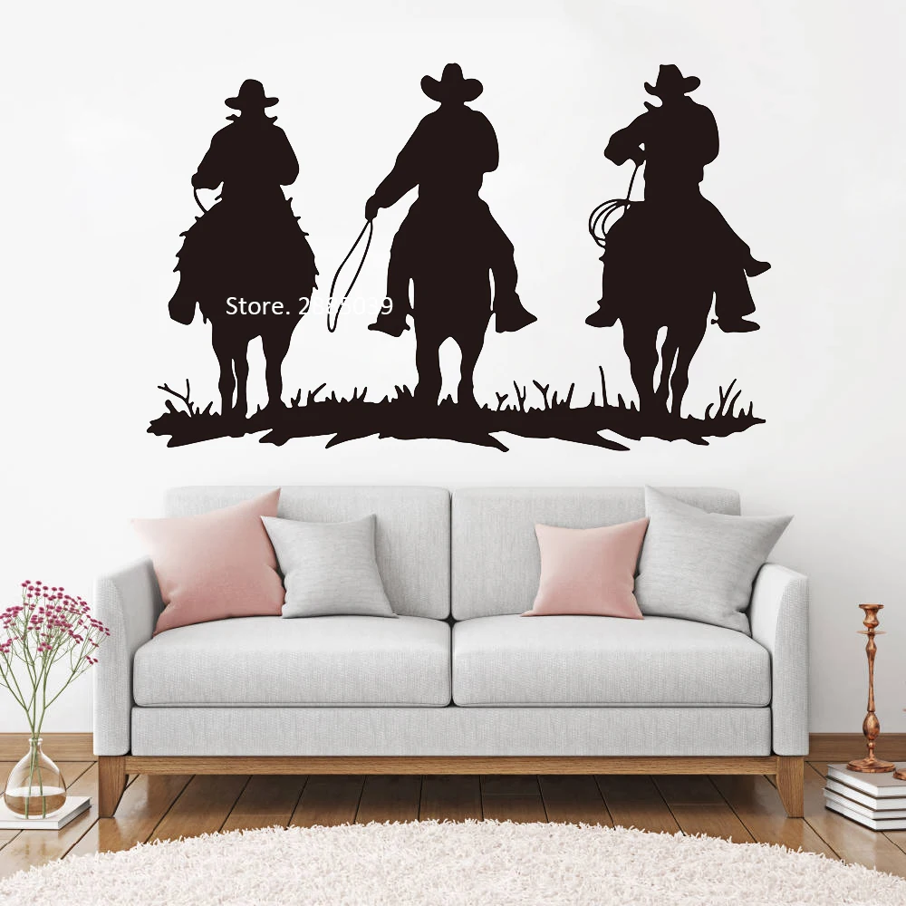 Большая наклейка на стену в виде верховой езды для гостиной, декор интерьера, 3 ковбойские наклейки с животными, Дикий Запад, настенные фрески Горячие постеры LC1093