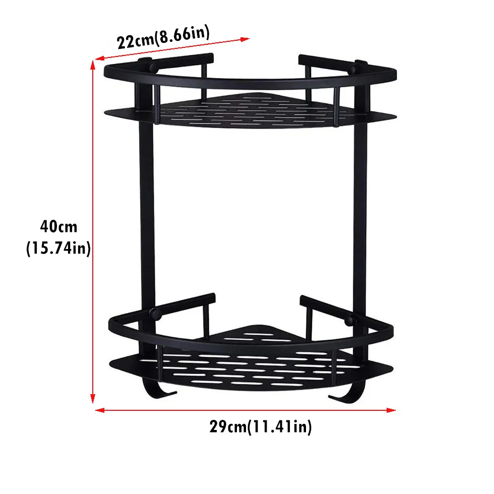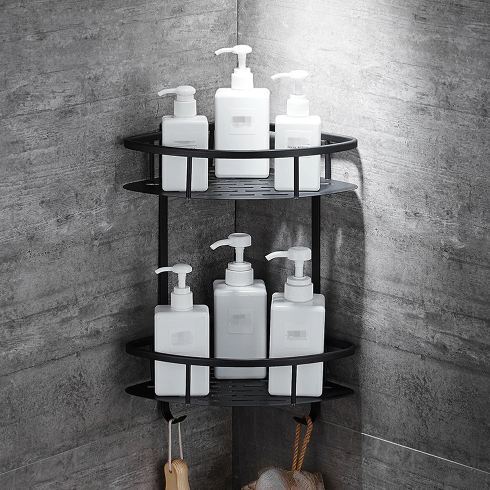 Настенные полки для ванной, черные, с треугольными полками, алюминиевая корзина, полка для душа, держатель для фена