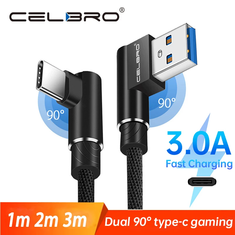 Кабель Usb Type-C под прямым углом 90 градусов, кабель 3 м, 2 м, кабель типа C для Xiaomi Mi 12, 11, Samsung Galaxy S22, S21, S20 Ultra, Note 20 Plus