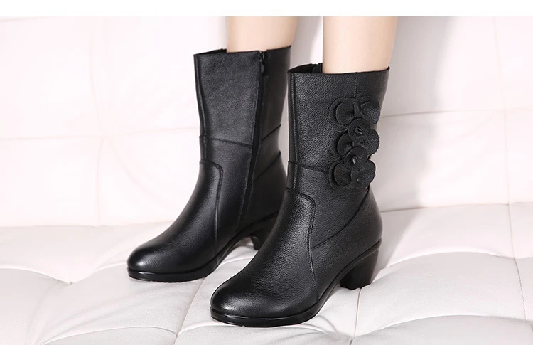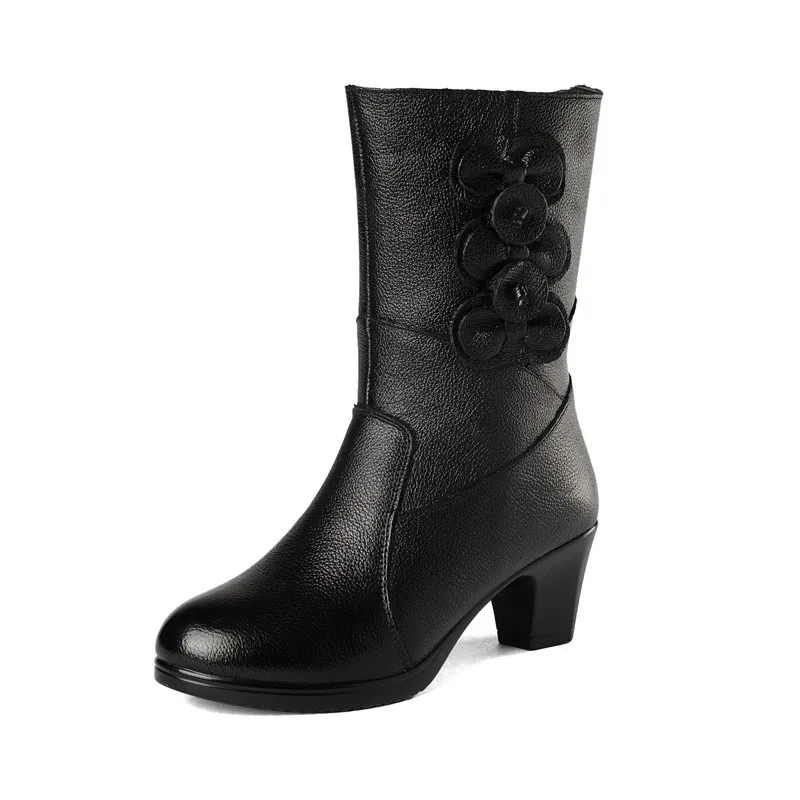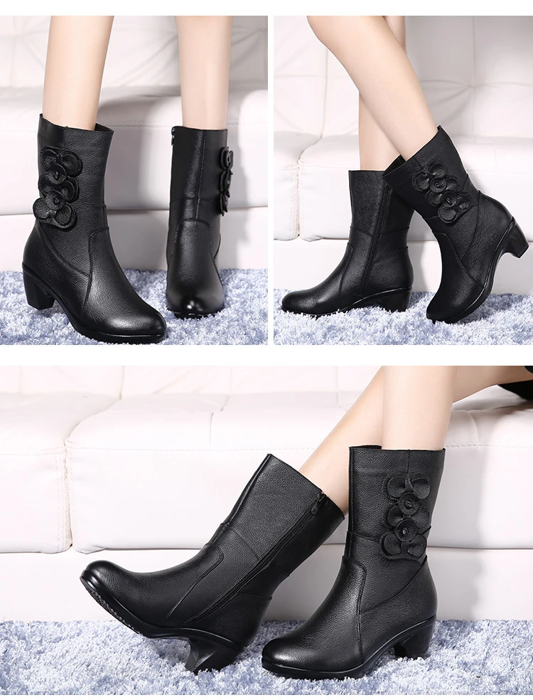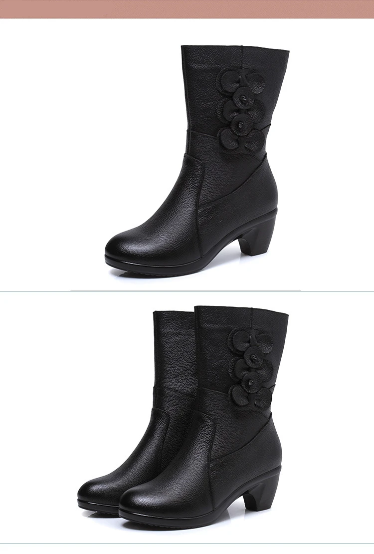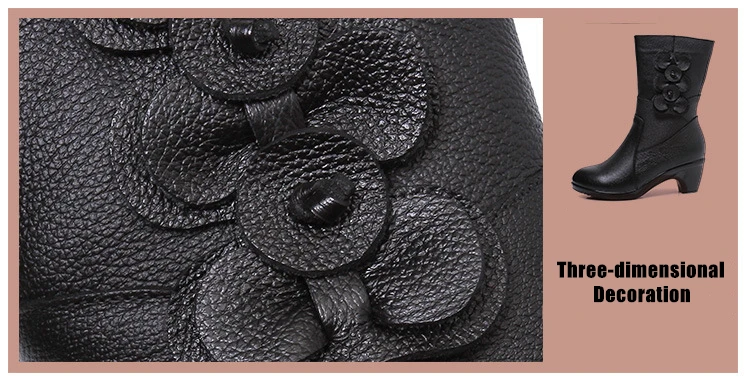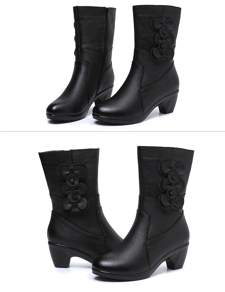 Женские ботинки WOIZGIC в старинном стиле, зимние теплые ботинки из натуральной коровьей кожи с цветами и плюшевой подкладкой на молнии, Размеры 35-40