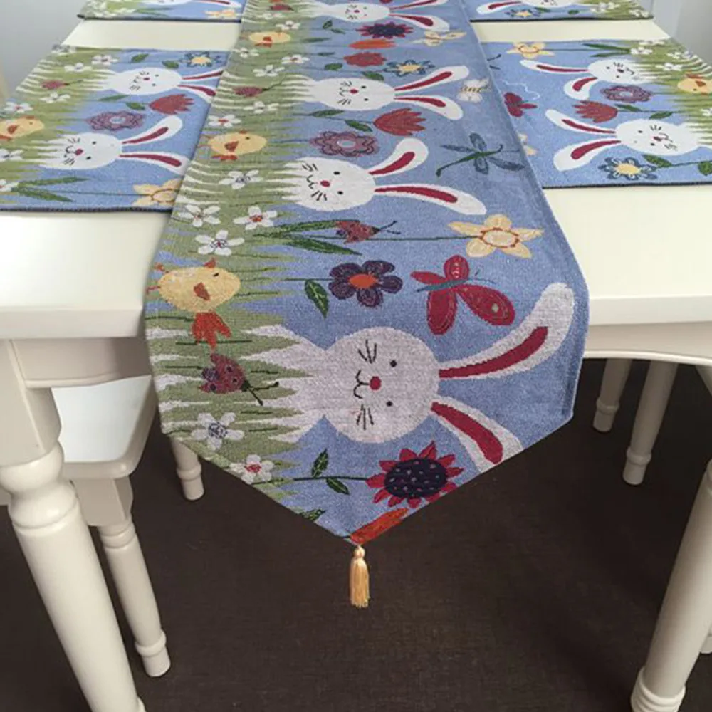 Скатерть из хлопка и льна, с изображением кролика, пасхальных яиц