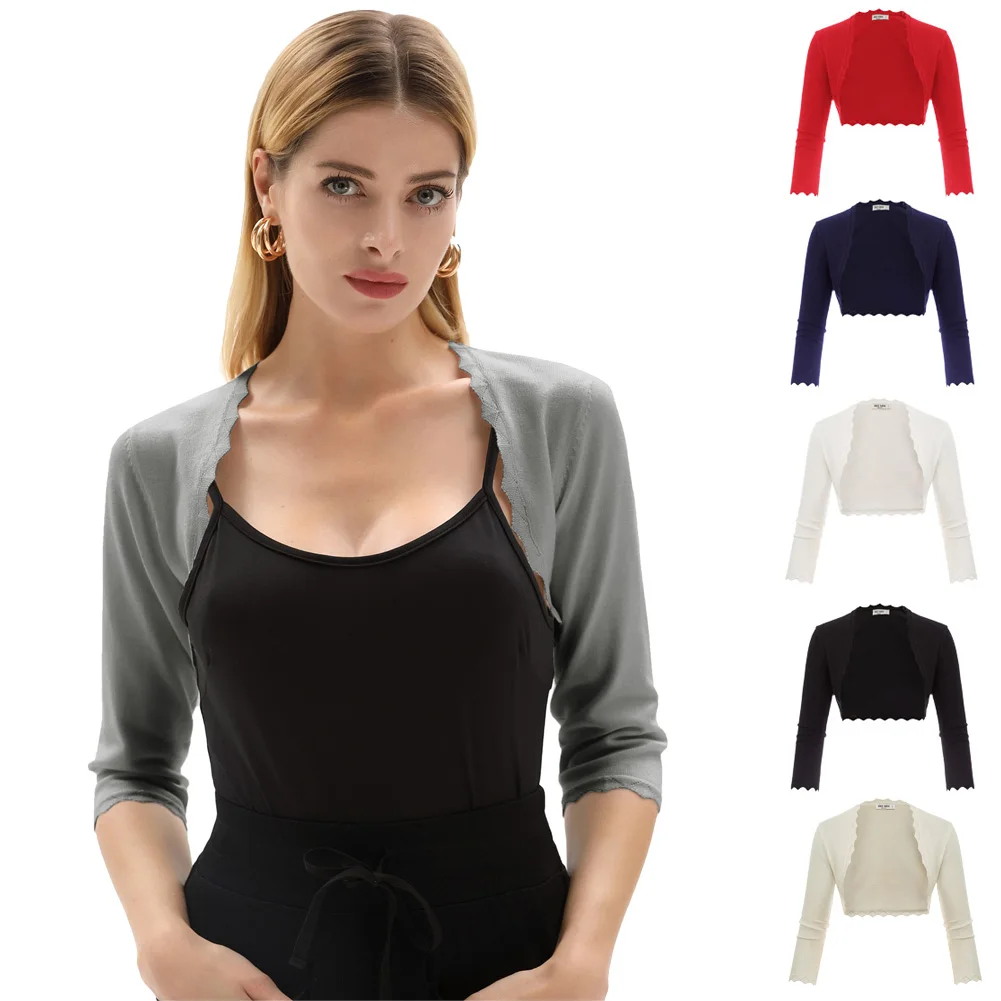 Grace Karin женский Болеро Кардиган Топы 34 рукав открытый спереди тонкий Болеро партия Copped Ретро зубчатый вязаный жакет летнее пальто