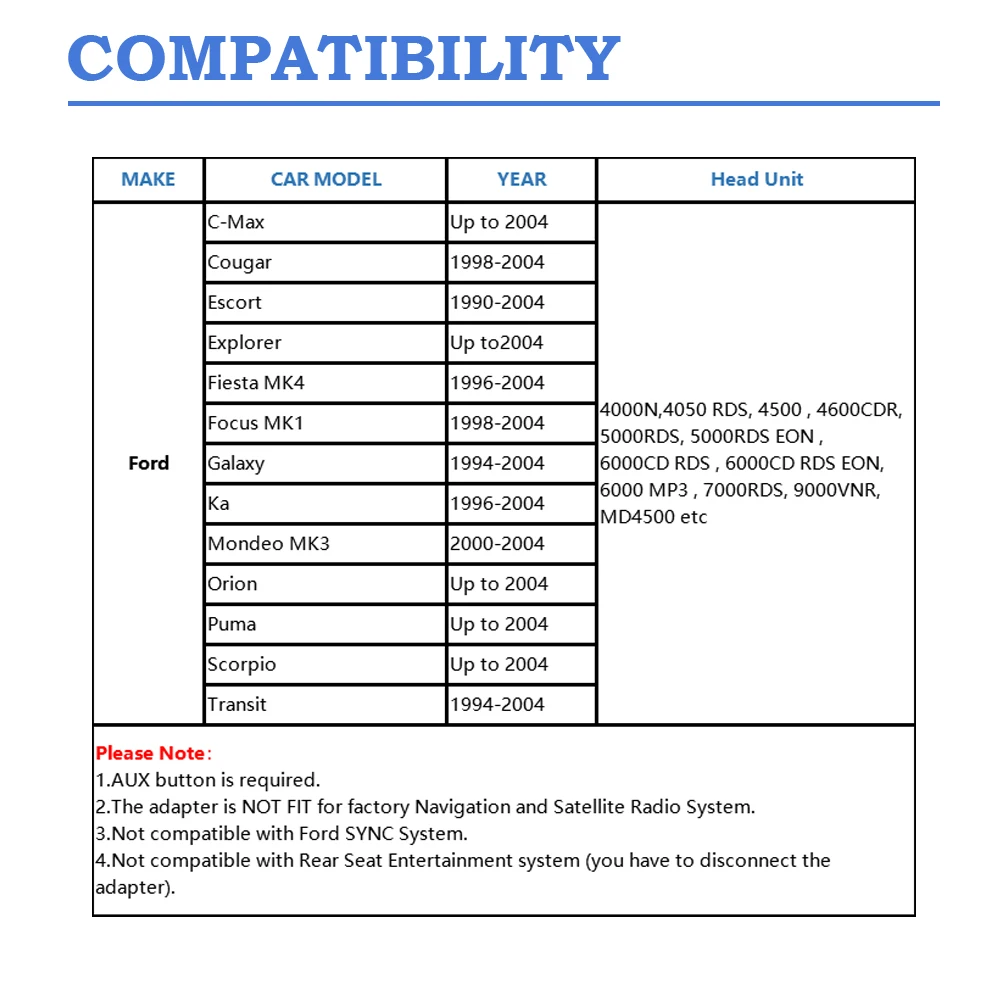 Moonet Автомобильный MP3 USBAUX 3,5 мм стерео адаптер, беспроводной, Hands Free, автомобильный Bluetooth ресивер, подходящий для старого Ford Fiesta MK4, Focus MK