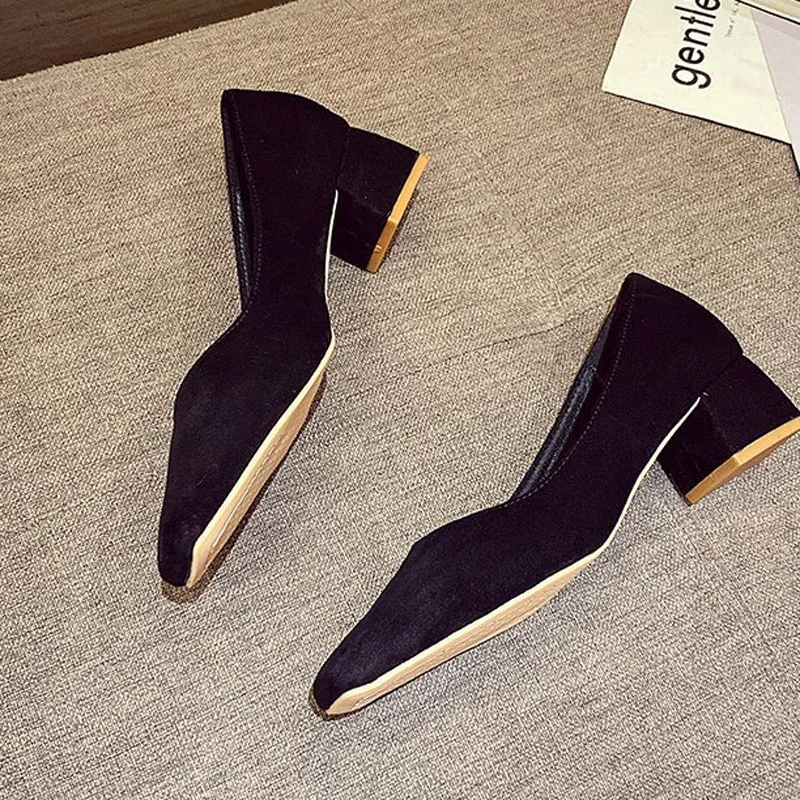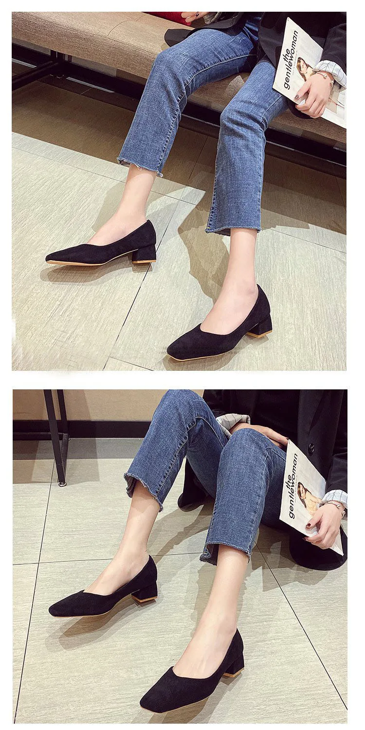 Осенняя обувь женские туфли-лодочки Удобная Женская рабочая обувь на низком толстом каблуке повседневная женская обувь из флока с круглым носком sapato feminino WSH3183