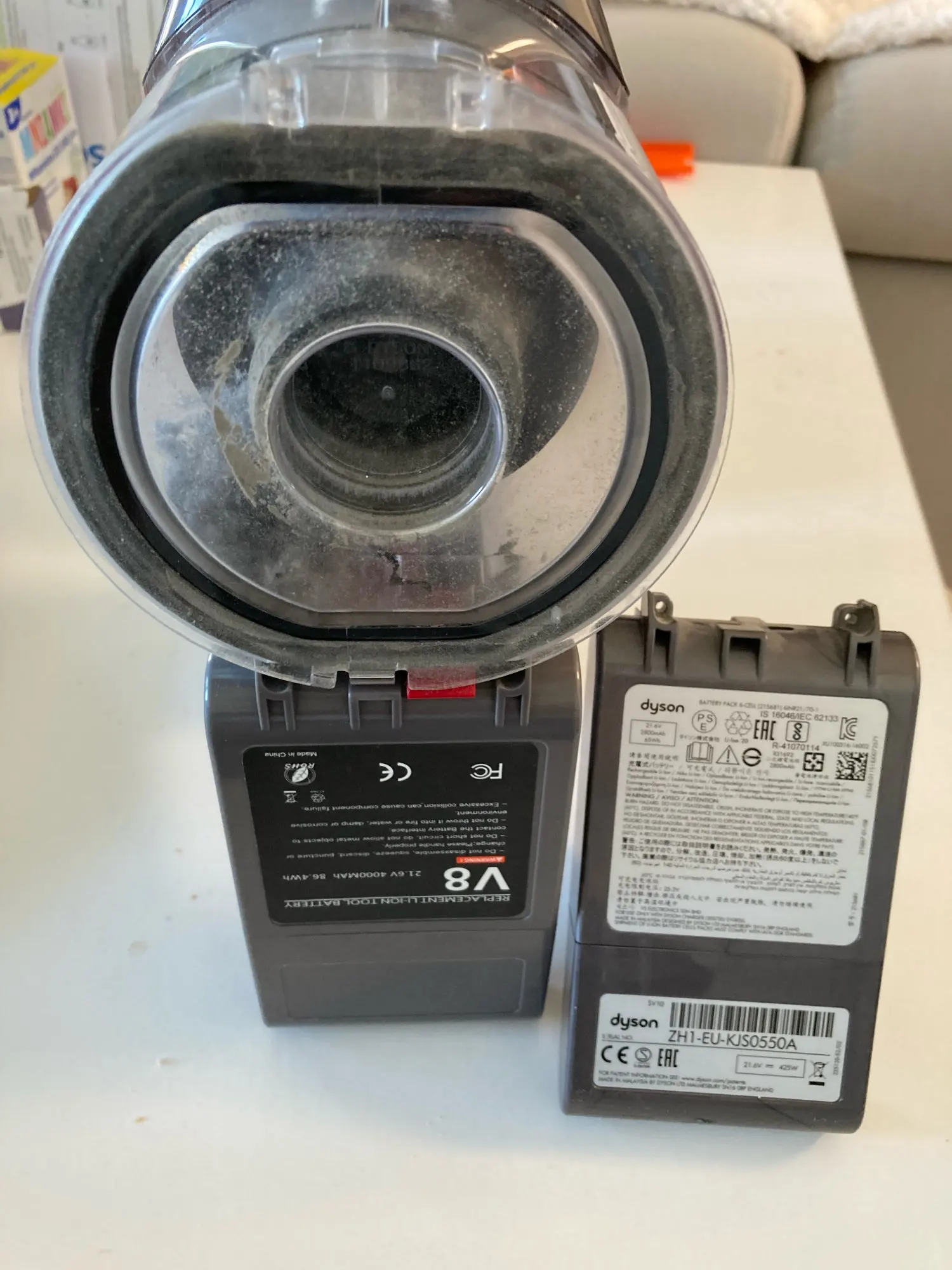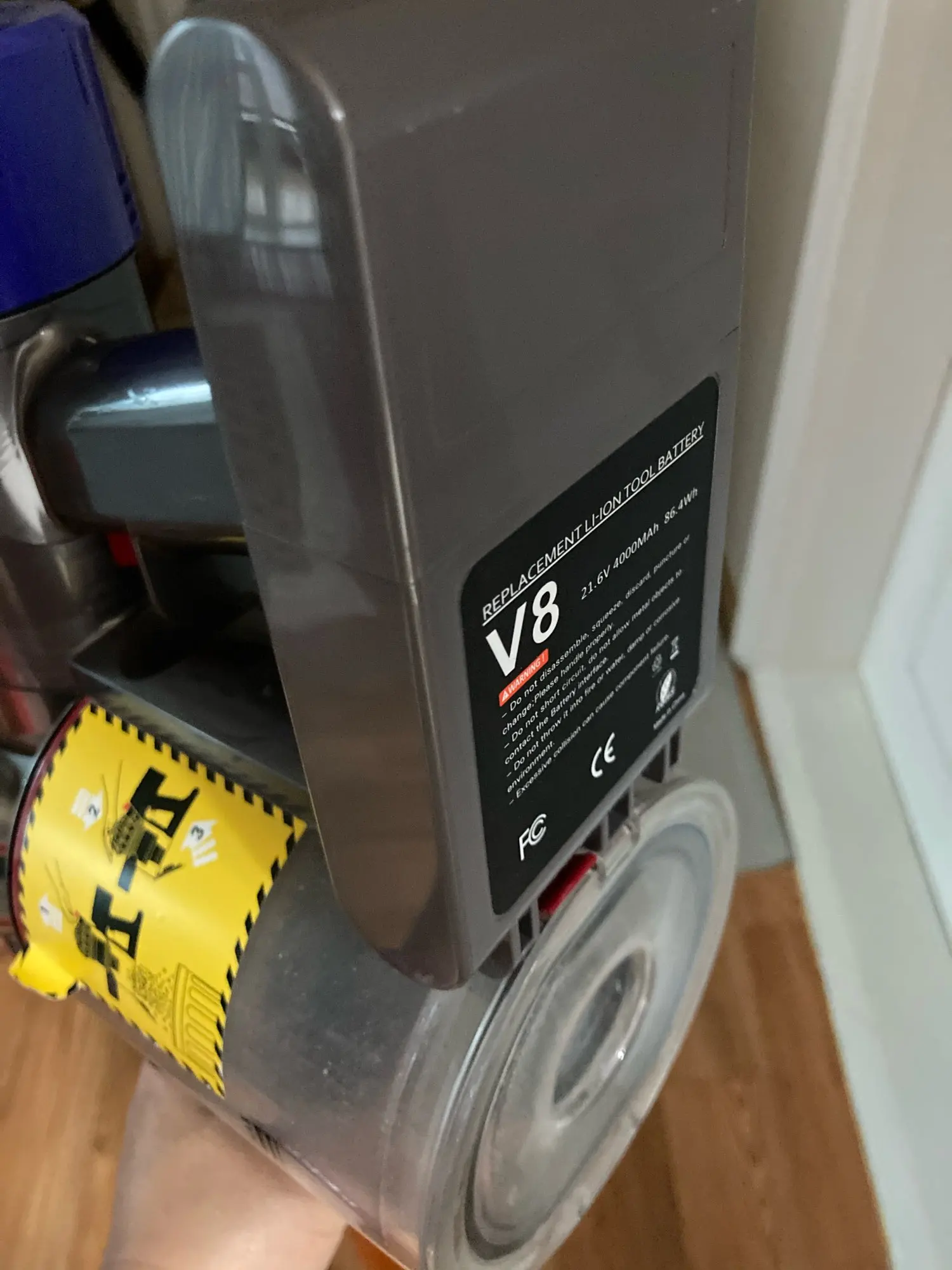 Хорошая замена для моего Dyson v8 абсолютного, хотя в высокой скорости вакуумной, кажется, иногда останавливается и запускается (не произошло с оригинальной батареей).