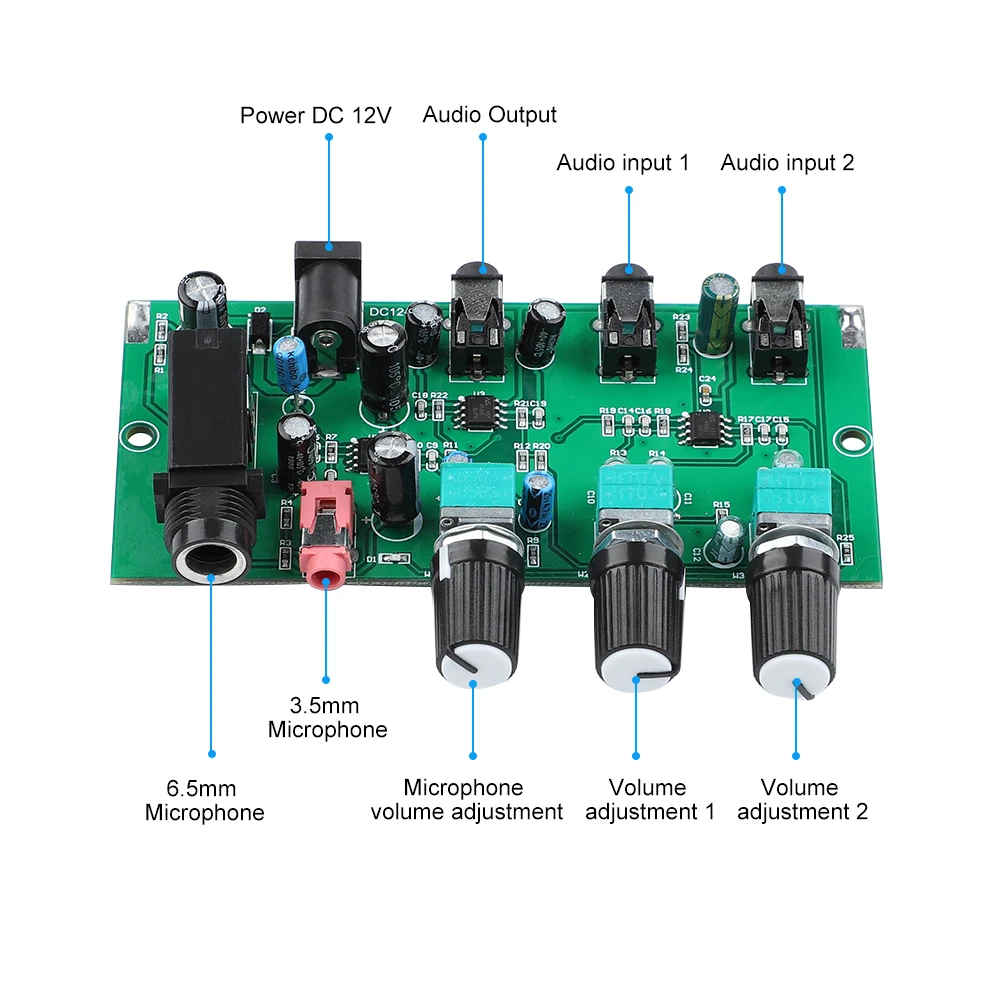 AIYIMA 2Way музыкальный предусилитель микрофон усилитель плата Караоке Смешивание усиление компьютера аудио сигнальный микшер плата DC 12-24
