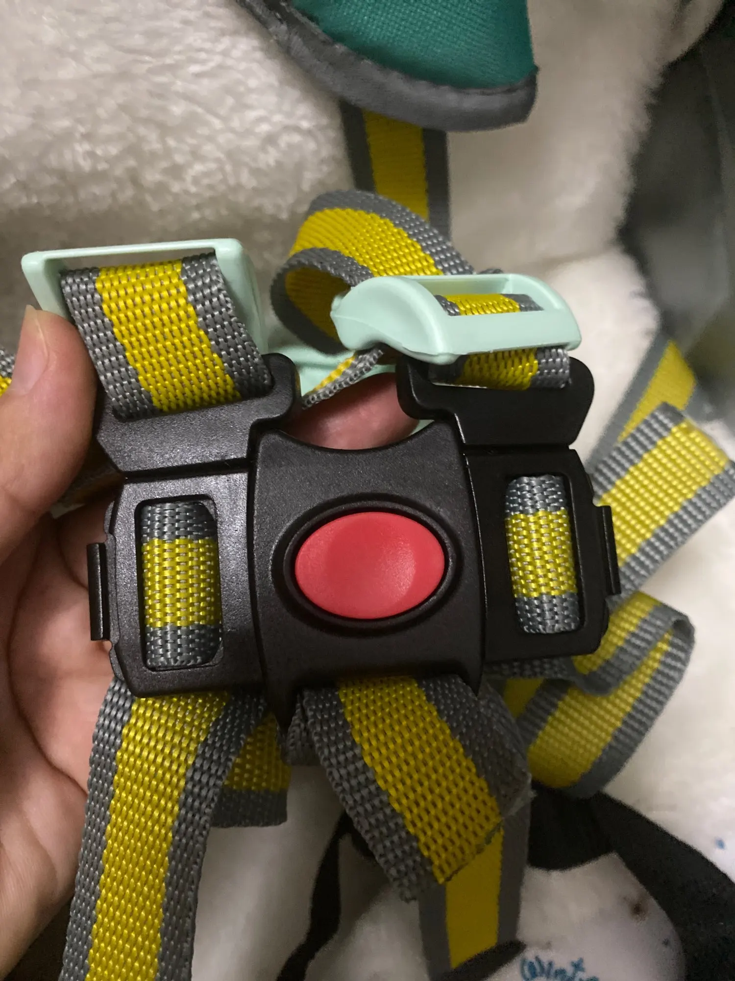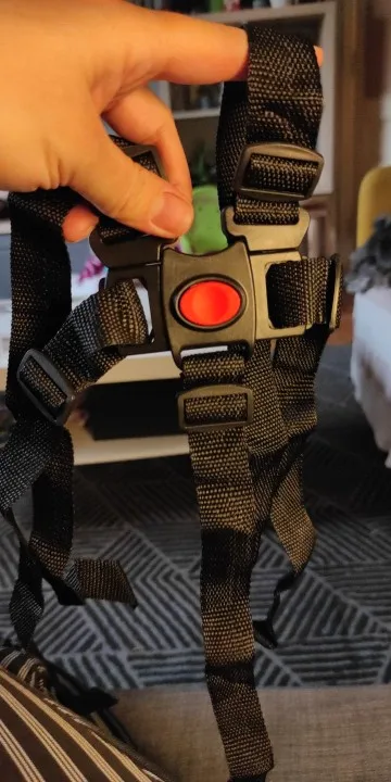 Хороший ремень ,защёлка туговата но это и хорошо ,ребёнок сам не расстегнёт ,ремни пришлось сшить с обратной стороны чтобы как то закрепить.
