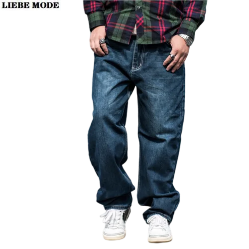 Джинсы-багги мужские с широкими штанинами, брюки с прямыми штанинами, свободные штаны в стиле хип-хоп, синие Черные, большие размеры 42 44 46
