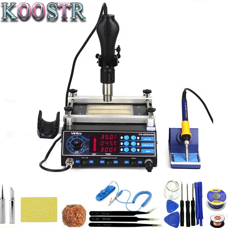 YIHUA 853AAA 3 в 1 Тепловая пушка, станция для распайки инфракрасного Bga, паяльная станция с цифровым дисплеем BGA, подогрев горячего воздуха