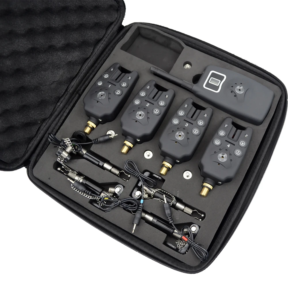 Особенности передатчика-Сигнал тревоги с указанием номера 1, 2, 3, 4-Сигнал низкого заряда батареи-Светодиодный тревожный сигнал с высоким выходным динамиком.-Высокая Видимость светодиодный фиксация около 40 секунд памяти-Регулируемая чувствительность, громкость, Кнопка тона-Дополнительный разъем для swinger-Отдельный отсек для батареи-Работает с 1 батареей 9 В (не входит в комплект)-Специальная резиновая поверхность.-256 переменных кодов достаточно для предотвращения помех от другого рыбака.Особенности для приемника-Более 100 м дальность передачи-Отображение экрана с сигнальным номером 1, 2, 3, 4-Экран с фоновым светильник-Светодиодный тревожный и высоковыходной динамик, вибрация-Включение/выключение, звук, Вибрационный переключатель.-Приемник будет звучать при получении сигнала, а номер указан на экране.-Внутренняя функция автоматического ремонта с изменяемым кодом.-Отдельный отсек для батареи-Работает с 1x аккумулятор 9 В (не входит в комплект)