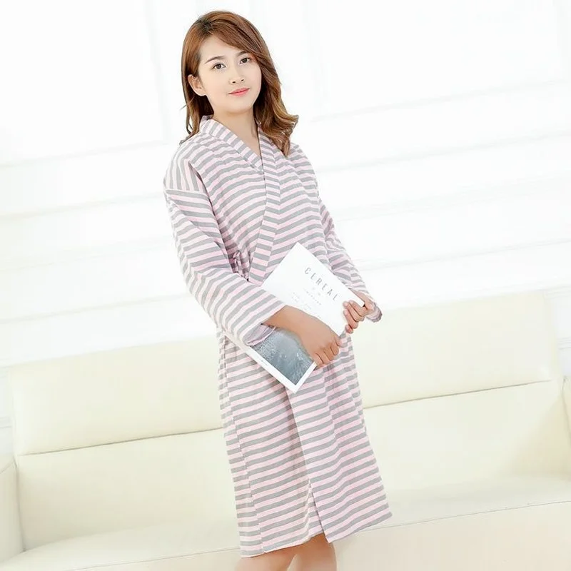 Ночная рубашка женская, из 100% хлопка, в полоску, тонкая, халат для пар
