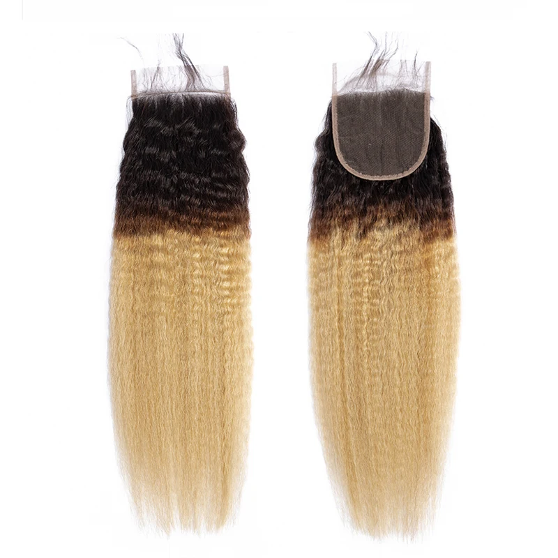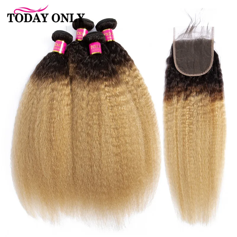 Сегодня только перуанские кудрявые прямые волосы пряди с закрытием блонд Омбре человеческие волосы 34 пряди с закрытием 1b27 Remy