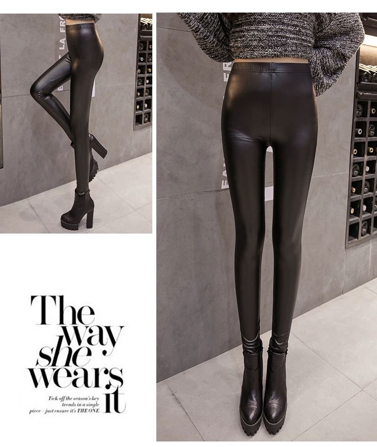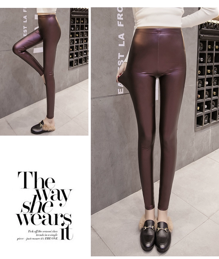 Осенняя Корейская 2021 PU искусственная кожа женские лосины, обтягивающие штаны, 4 варианта размера: Цвета тонкие женские флисовые узкие Брюки Легинсы женские S-3XL 7929 50